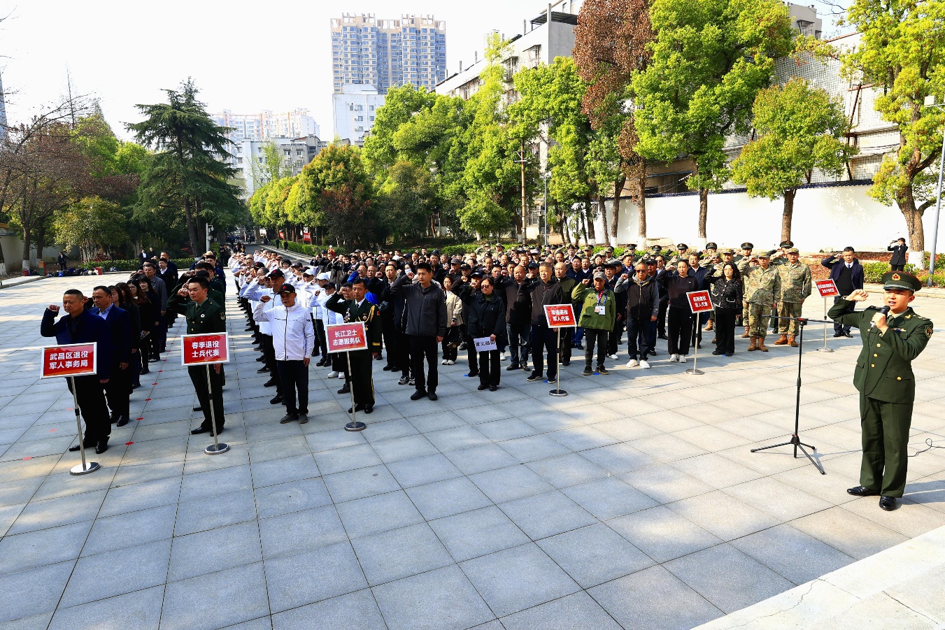 4月1日,值北伐战争百年之际,武昌区军地代表齐聚北伐独立团烈士陵园,开展清明祭扫活动。驻区部队现役军人、军休干部与退役军人、退役军人系统干部职工等300余人共同参与。