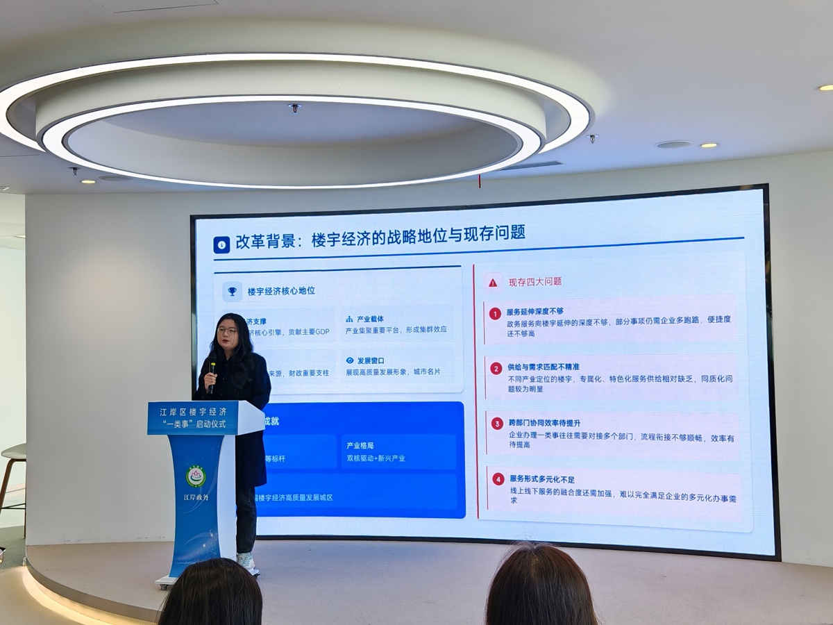 楼宇运营方代表袁丽娜表示,“一类事”改革及“企航通”服务站,如同为楼宇配备了常驻“政务管家”,将显著提升企业办事便利度和归属感。