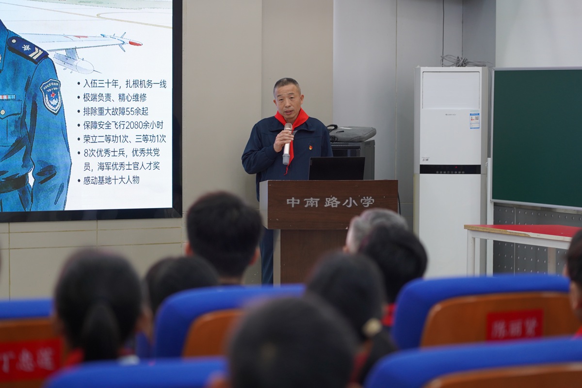 清明时节思英烈,薪火相传砺少年。为厚植爱国主义情怀,让红色血脉代代相传,武汉市军休二中心老兵宣讲团成员石金海走进中南路小学,以“忆峥嵘岁月 传红色基因 做时代新人”为主题,为少先队员们带来一场有温度、有力量、有情怀的沉浸式红色宣讲。