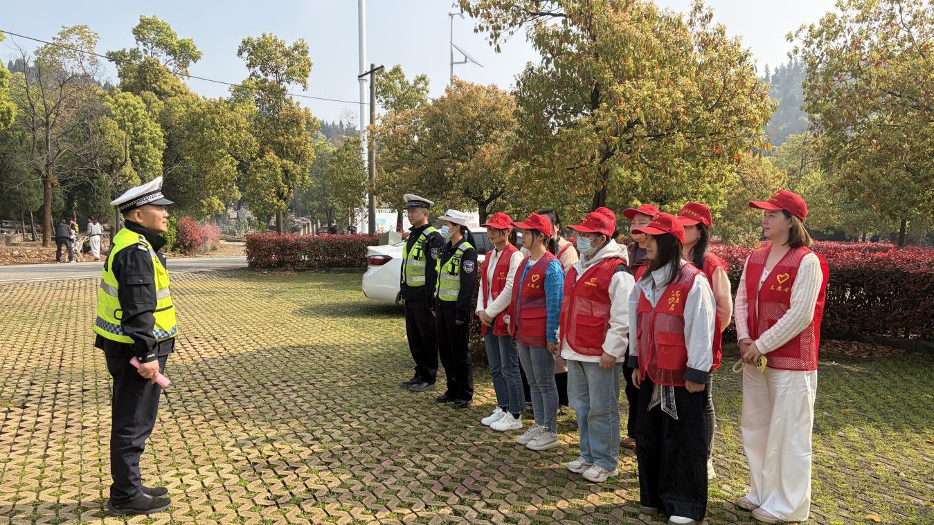讲话结束后,交安站工作人员与志愿者一同前往陵园周边路口,开展文明交通指引服务,引导前往八叠山生命公园陵园的车辆有序停放、通行,为祭扫群众保驾护航。