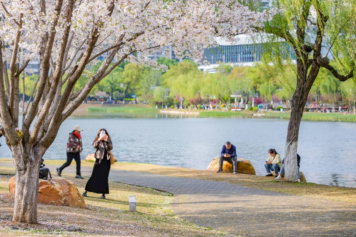 眼下,西北湖广场的樱花还在盛放期。尽管部分中樱已开始凋谢,但有晚樱接力登场,花期仍在延续。记者从西北湖绿化广场管理中心获悉,为了让市民游客充分感受“落英缤纷”的春日诗意,今年樱花季,园区在核心赏樱区域实行“缓扫落樱”的精细化保洁模式——自然飘落的花瓣适度保留,打造浪漫的“花瓣步道”“樱花地毯”,而对游客留下的废弃物则做到随产随清、日产日清。