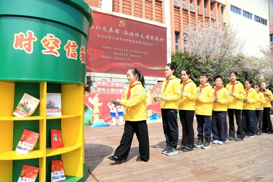 4月1日,武汉市洪山区第41届革命传统教育周启动仪式在洪山区第一小学举行。本次活动由区关工委、区委老干部局、区教育局、团区委联合主办,2500多名师生共同见证了一场特殊的“对话”。活动以“传承红色基因 弘扬伟大建党精神”为主题,通过一封封“时空来信”,串联起历史、当下与未来。