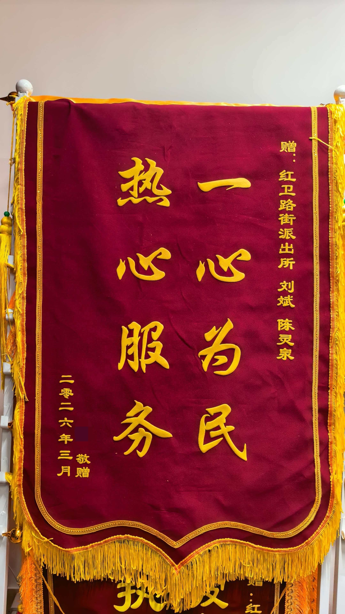 3月31日下午3时,陆先生专程带着一面锦旗来到红卫路街派出所,对民警、辅警暖心高效的服务表示感谢。据悉,这也是胡永鹏工作室开年以来为群众找回的第89件遗失物品。