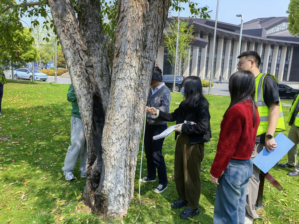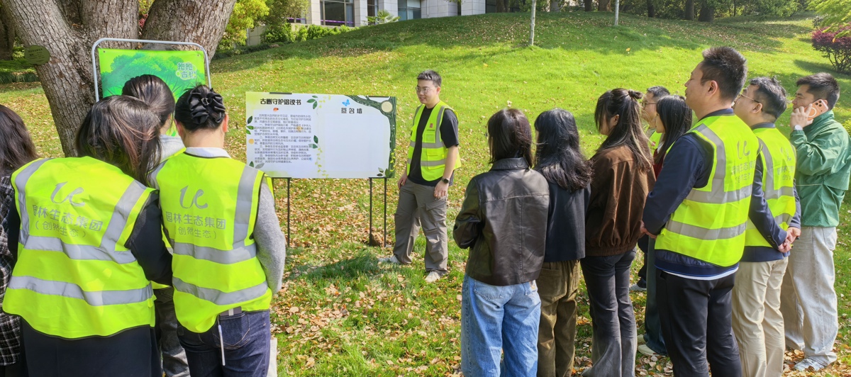 随后,参与者沿预定路线探访了东湖宾馆内多株特色古树。每到一处,工作人员不仅讲解树木的树种、树龄、历史渊源及其文化生态价值,还结合武昌区古树保护工作实践,分享古树的生长习性、常见病害与日常养护要点,介绍了定期巡查、专业养护、应急处置等工作举措,让参与者真切感受到古树保护工作的严谨与不易。