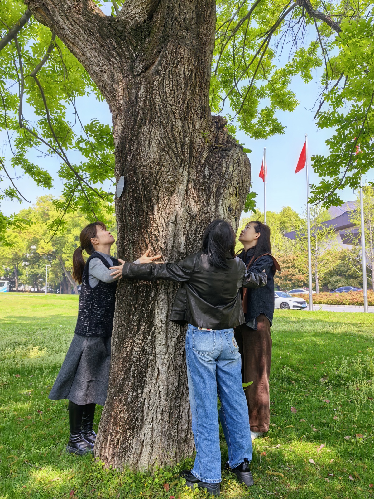 最后的“抱抱古树”互动时刻,每至一处,大家轮流选择一棵古树,张开双臂,拥抱这些平日用专业语言分析与保护的生命,静心感受岁月赋予它们的沉稳与力量。几位女青年手拉手才勉强环抱住一棵古树。欢声笑语中,有人轻声感叹:“这要经历多少年风雨才能长成这样啊。”一瞬间,敬畏与责任,在环抱的双臂间悄然传递。
