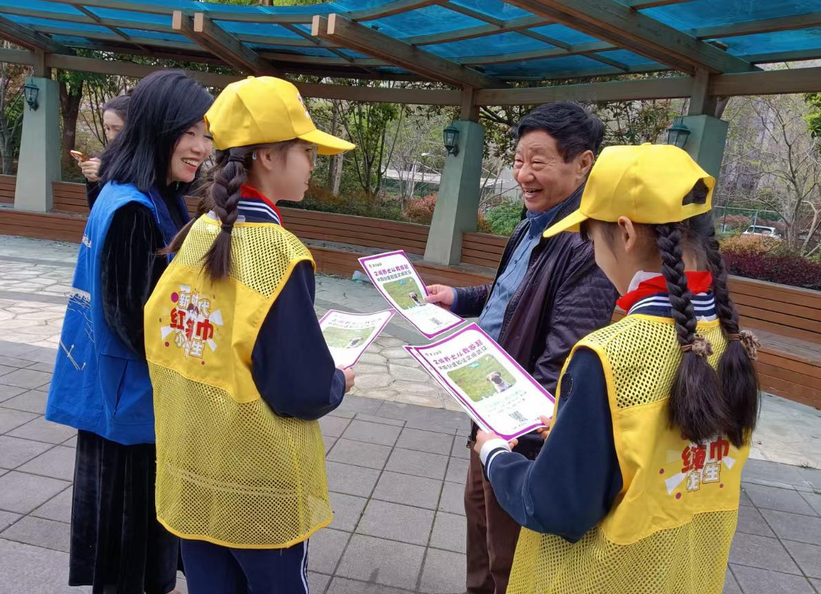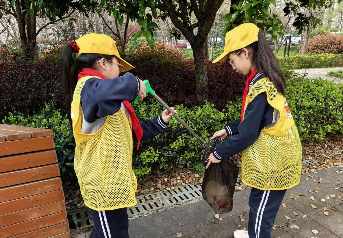 在实践环节,小志愿者们手持垃圾夹、垃圾袋,分工协作清理口袋公园与董家明渠沿线的纸屑及杂物,用实际行动守护家园洁净。部分同学化身文明劝导员,在路边值守,提醒电动自行车安全行驶;还有部分同学向过往居民发放文明养犬宣传单,倡导文明养犬、爱护公共环境。