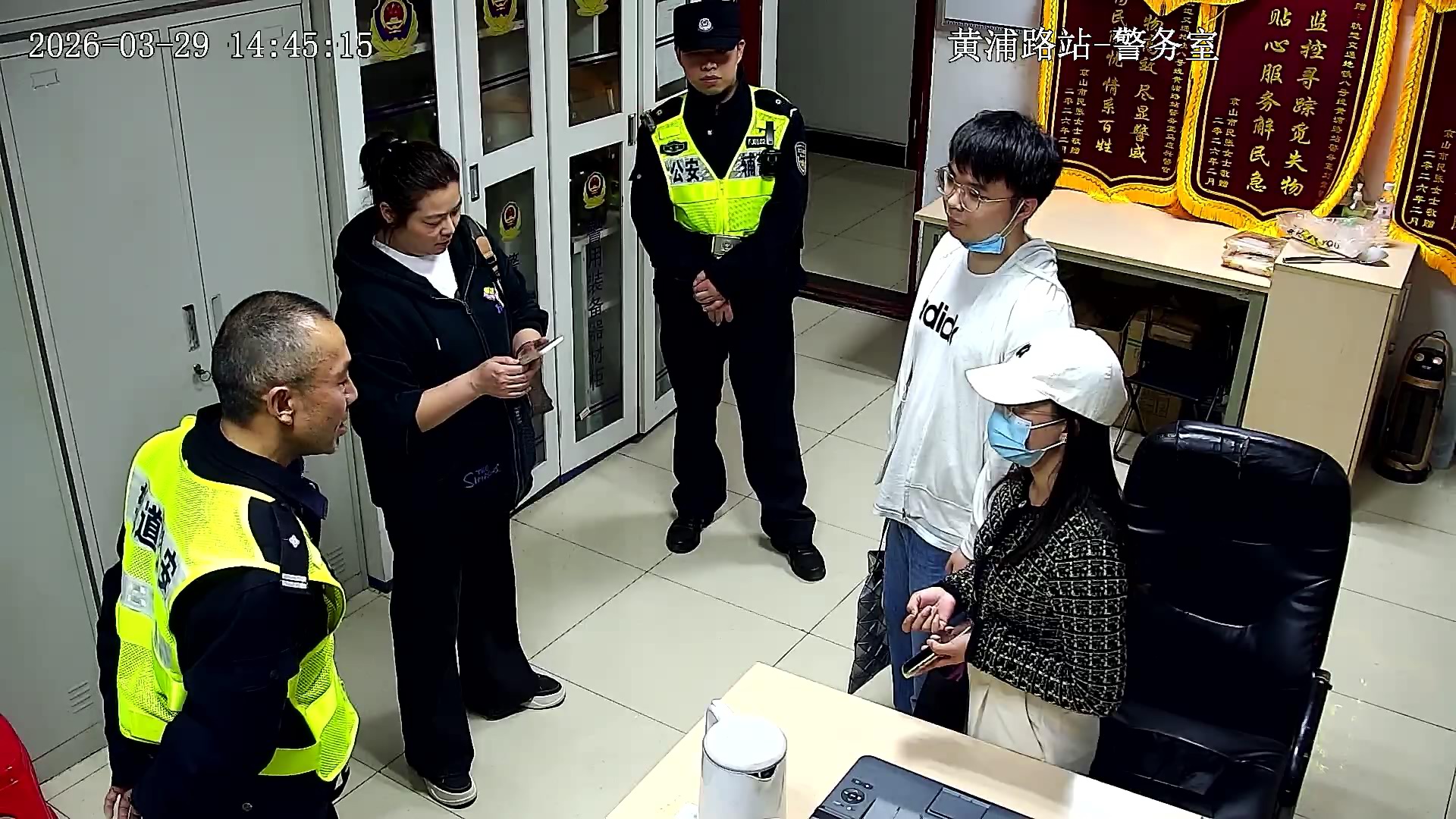 3月29日14时45分,在黄浦路站警务室,捡拾物品的乘客将完好无损的手提袋交给轨道民警。拿到失而复得的遗失物品,失主张女士连连向民辅警致谢,对武汉轨道公安认真负责、为民办实事的工作精神连连称赞。