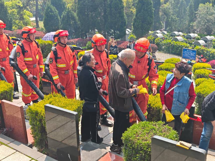 武汉消防创新推行“阵地+流动”宣传模式,在陵园、社区、进山要道及周边村庄,通过车载广播、发放传单、悬挂横幅、张贴标语、案例宣讲等方式,向祭扫群众普及森林防火法律法规及春季防火安全知识。结合清明祭扫习俗,重点倡导鲜花祭祀、植树缅怀等绿色文明方式,强调露天焚烧纸钱和香烛的火灾风险,切实增强全民防火意识。