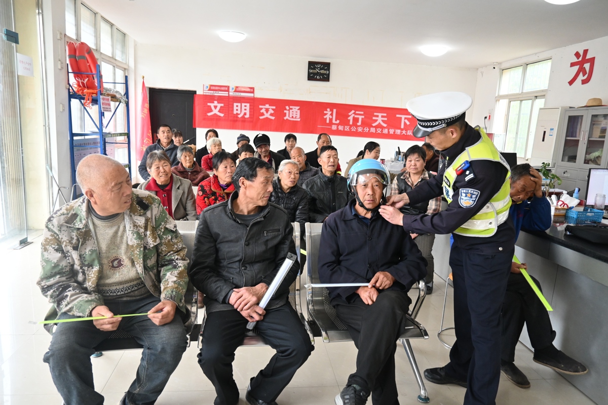 为切实提高辖区老人群体“知危险 会避险”安全防护能力,2026年4月2日,武汉蔡甸交警走进侏儒山街金马堰村,围绕银发一族开展“文明交通 礼行天下”暨“敲门行动”交通安全宣讲活动,将交通安全知识送到村民家门口,用实际行动引导和呵护老年人平安出行。