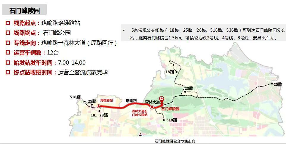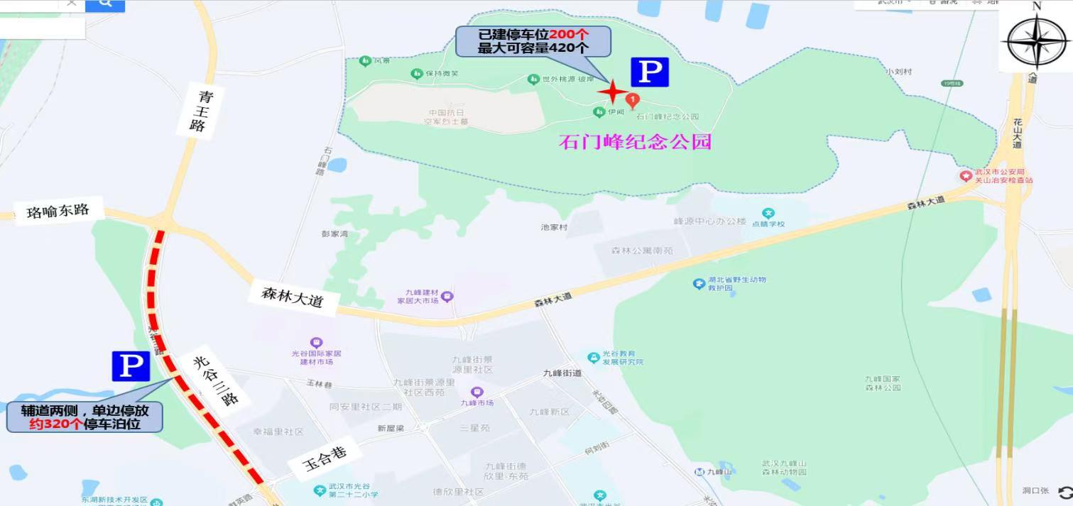 ●交通管理措施:4月4日、5日、6日每日7:00至15:00,森林大道(光谷四路至青王路)禁止机动车通行(公交车除外)。