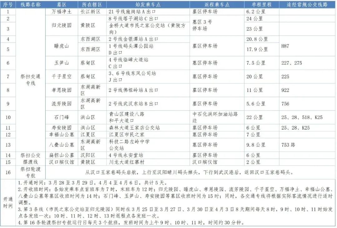 2026年清明期间祭扫公交线路一览表
