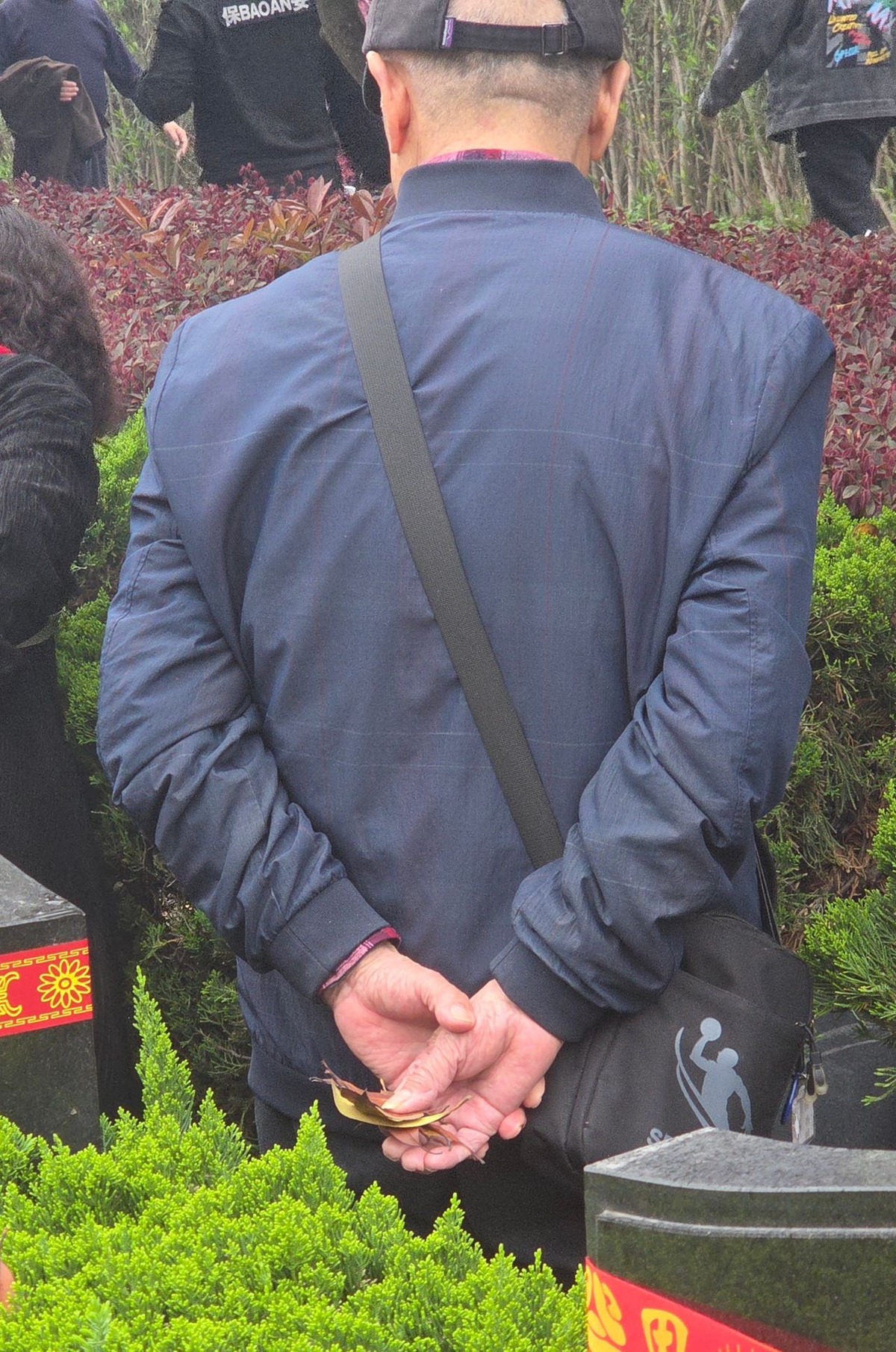 当天祭扫时,杨爹爹像往常一样,坐在墓碑旁,对着老伴的名字细细诉说:“家里一切都好,女儿们都孝顺,外孙们也都好好的,你别牵挂,在那边好好的。以前我俩一起去旅游,现在我来跟你说说家里的事,就跟以前一样。”他把家里的近况、孩子们的小事,一桩桩一件件讲给老伴听,仿佛老伴就在身边,静静听着他说话。