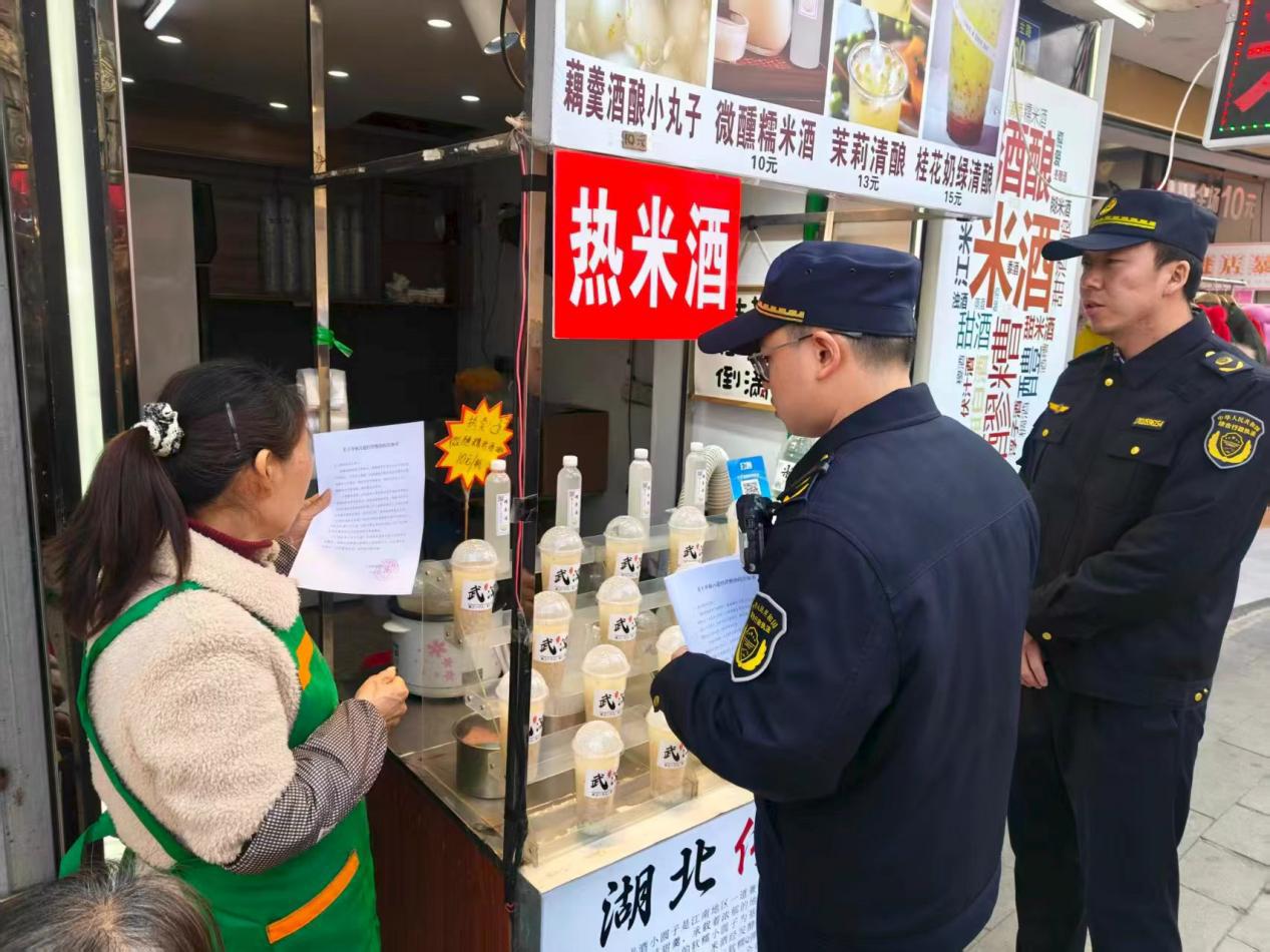 “您好,请将商品移至店内经营。”在民主路沿线,执法队员正耐心劝导出店经营商户。针对樱花季期间人流量大的特点,执法中心采取“定点值守+机动巡查”模式,重点整治司门口天桥、民主路、红墙等区域流动摊贩、出店经营等行为,同时,向沿街商户发放《占道经营告知书》100余份,引导商户落实“门前三包”责任,共同维护市容环境。