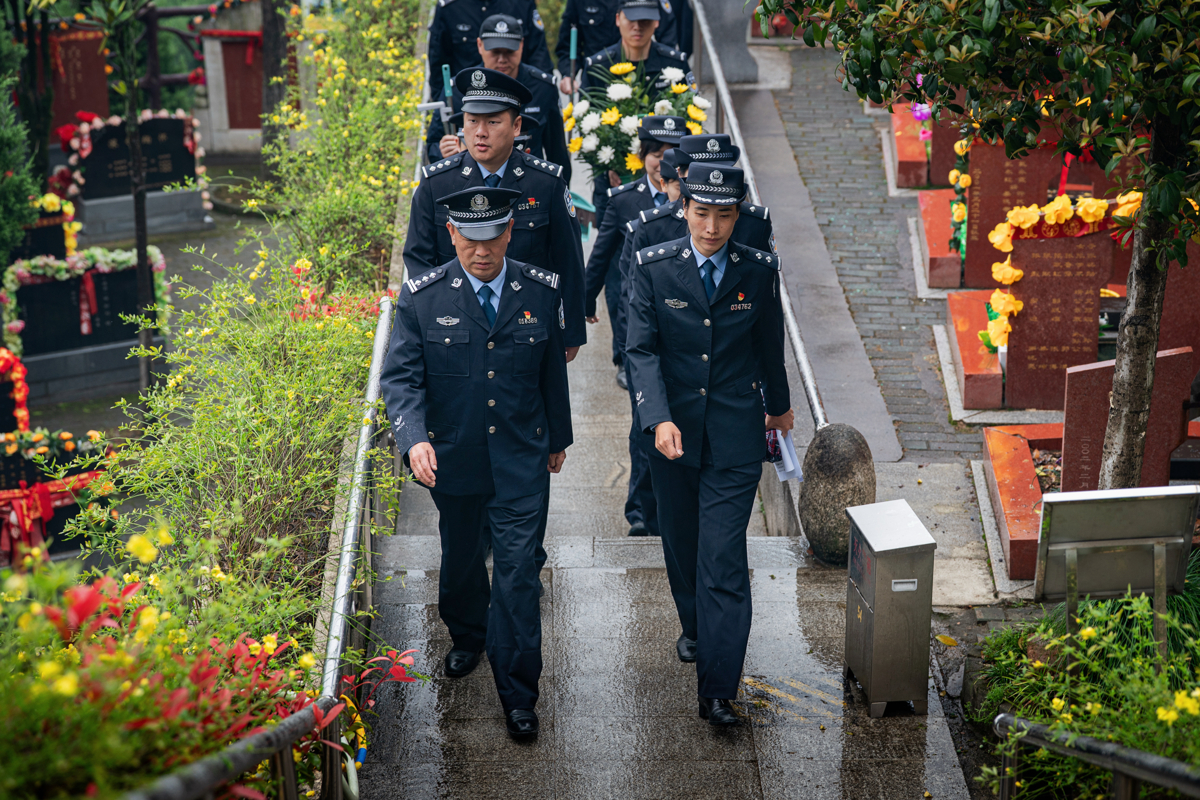 一束束鲜花,是对英烈的深切缅怀;一次次鞠躬,是对英烈精神的庄严传承。现场安静肃穆,唯有微风轻拂,诉说着青年警队对英烈的无限思念与传承决心。