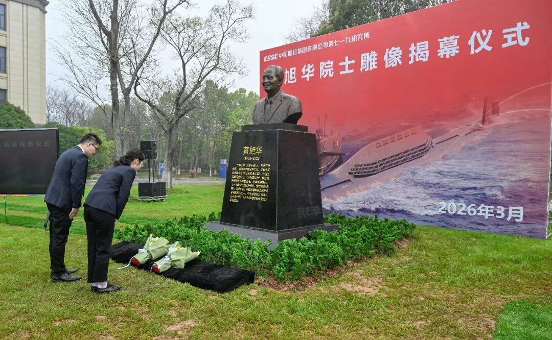 3月25日,中船七一九所在武汉举行黄旭华、张金麟院士雕像落成揭幕仪式。这里是黄旭华院士奋斗六十余载的科研重镇,他隐姓埋名30载,带领团队白手起家,靠算盘、计算尺等突破多项技术难关,铸就我国第一艘核潜艇,年过花甲仍亲自随艇参与极限深潜试验,用一生践行“此生属于祖国,此生无怨无悔”的誓言。仪式上,全体参会人员向雕像三鞠躬,青年科研人员献花致敬,立志传承其科研精神,续写核潜艇事业新篇章。