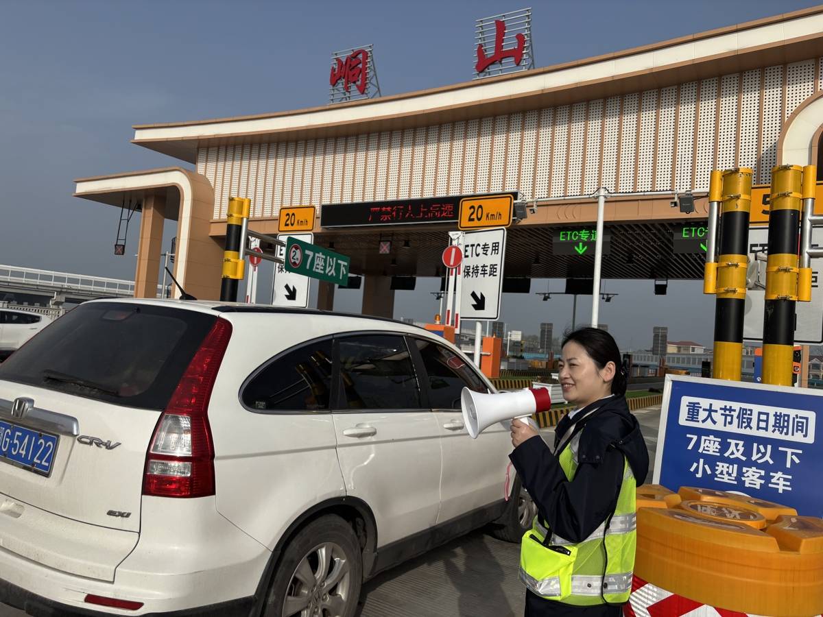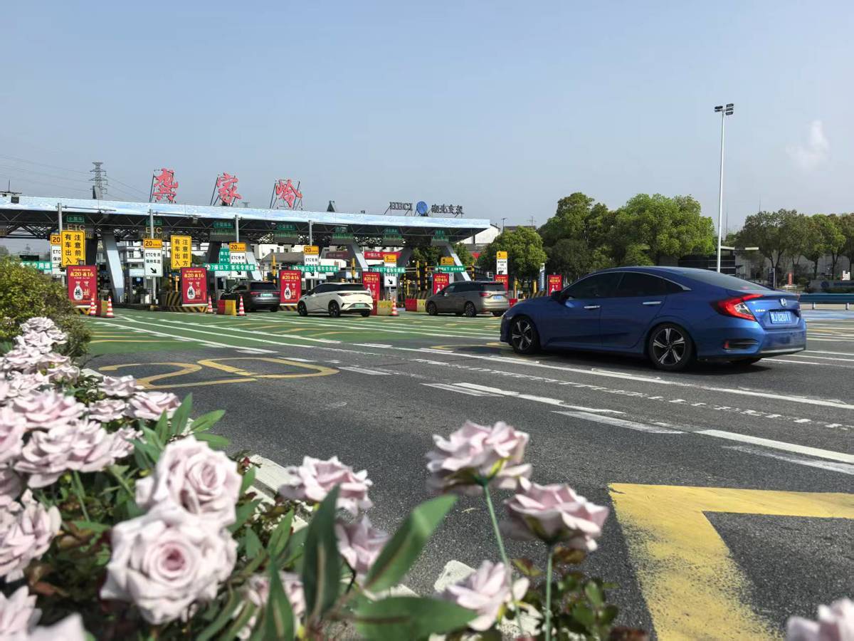龚家岭收费站毗邻交通枢纽武汉火车站及东湖风景区,收费广场上小车云集,彩色防滑路面整洁亮眼,收费岛上花箱点缀、鲜花盛放,站外挡墙绘有黄鹤楼等标志性城市元素。身穿反光背心的收费站负责人邓祎正来回疏导交通。“今天车流量将达8万辆,集中在上午时段。”她介绍,现场出入口采用分离式设置,设计5进9出14条车道,其中ETC车道3进6出,人工混合车道2进3出,增设1条潮汐车道及4条应急车道。