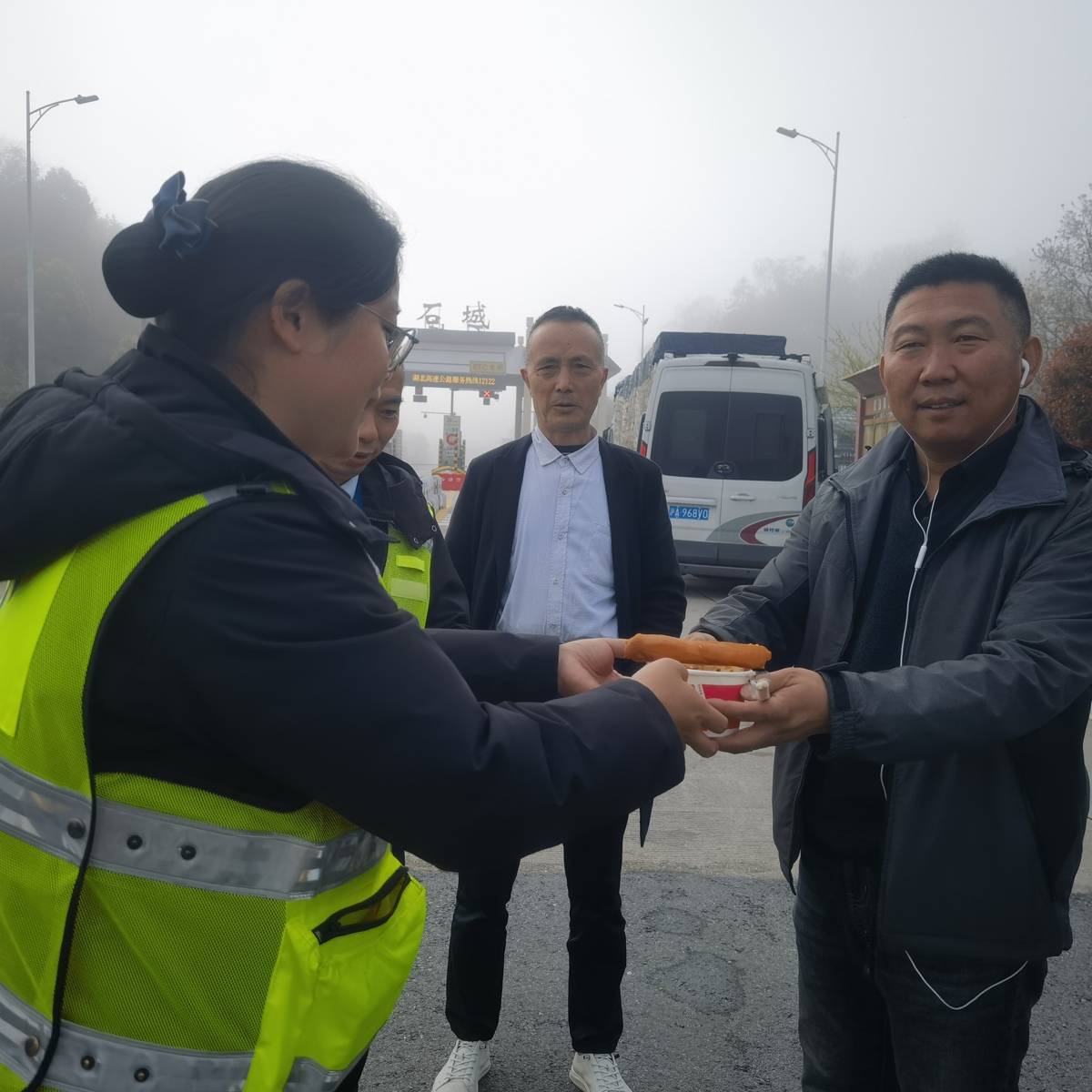 当天,受大雾天气影响,华容收费站、石城收费站临时实施交通管制,湖北交投武黄运营公司员工及时为滞留司乘人员送上热粥、包子等爱心早餐,以暖心服务缓解旅途疲惫。峒山驿站开启便民服务模式,设置休息专区,提供热水、充电、路况咨询等贴心服务。