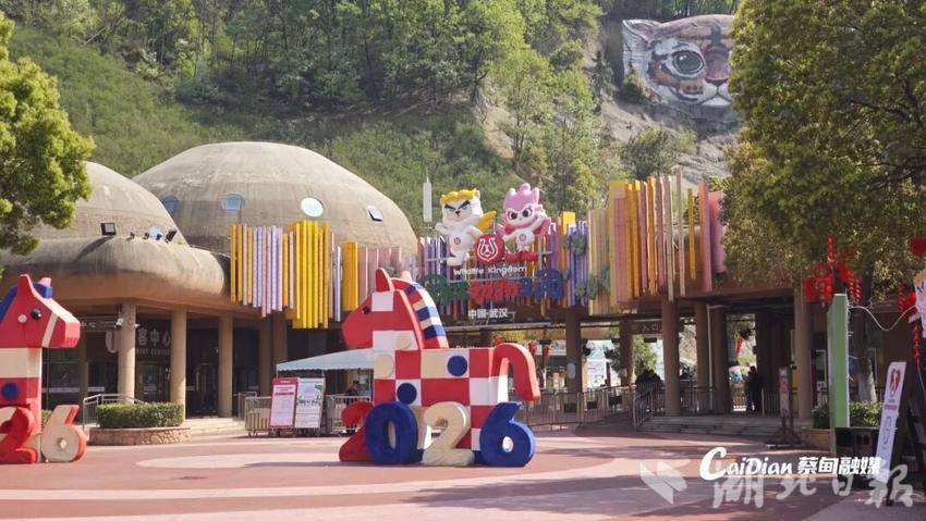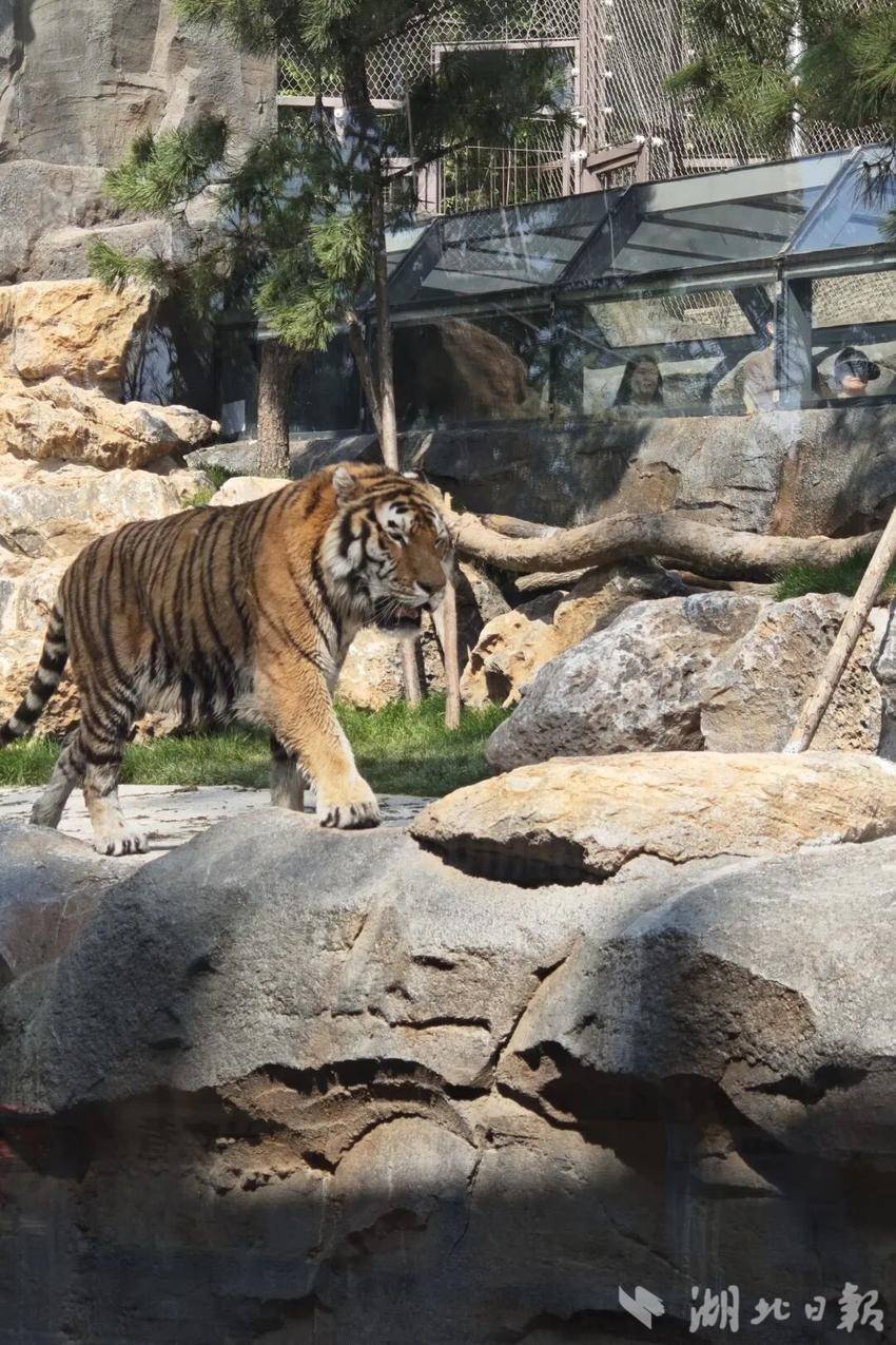 于春节期间亮相的武汉首个沉浸式山林野化虎展区——“明知山”虎园,已成为游客必打卡地标。场馆依托乌梅山自然山体,保留原生植被与地形,创新采用环山步道+数十米全景玻璃隧道设计,使游客观赏路径与东北虎活动区域立体交错。在安全防护下,游客可通过独特的“仰视”视角,近距离观赏东北虎穿行山林、巡视领地的原生姿态,也为摄影爱好者提供专属角度。园内成年虎与幼虎相映成趣,亲子家庭可感受“明知山有虎,偏向虎山行”的乐趣。