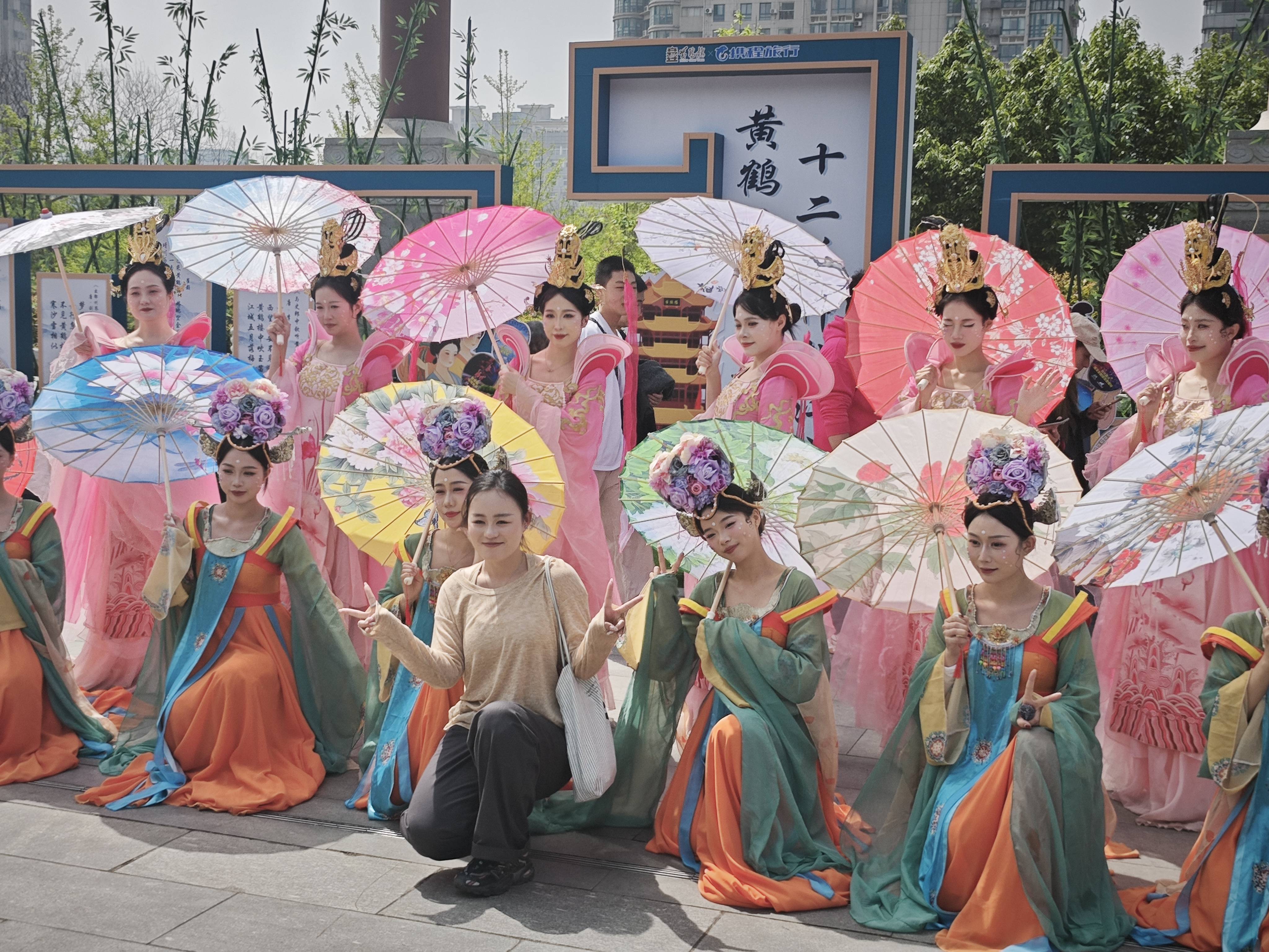 黄鹤楼景区工作人员介绍,清明假期,《鹤舞长河》系列行进式实景演出持续上演,分布在园区多个点位,游客移步换景、步步皆景。而在西区的“黄鹤吉市”,非遗手作、文创潮玩、地道美食琳琅满目,好逛、好拍,还好吃。
