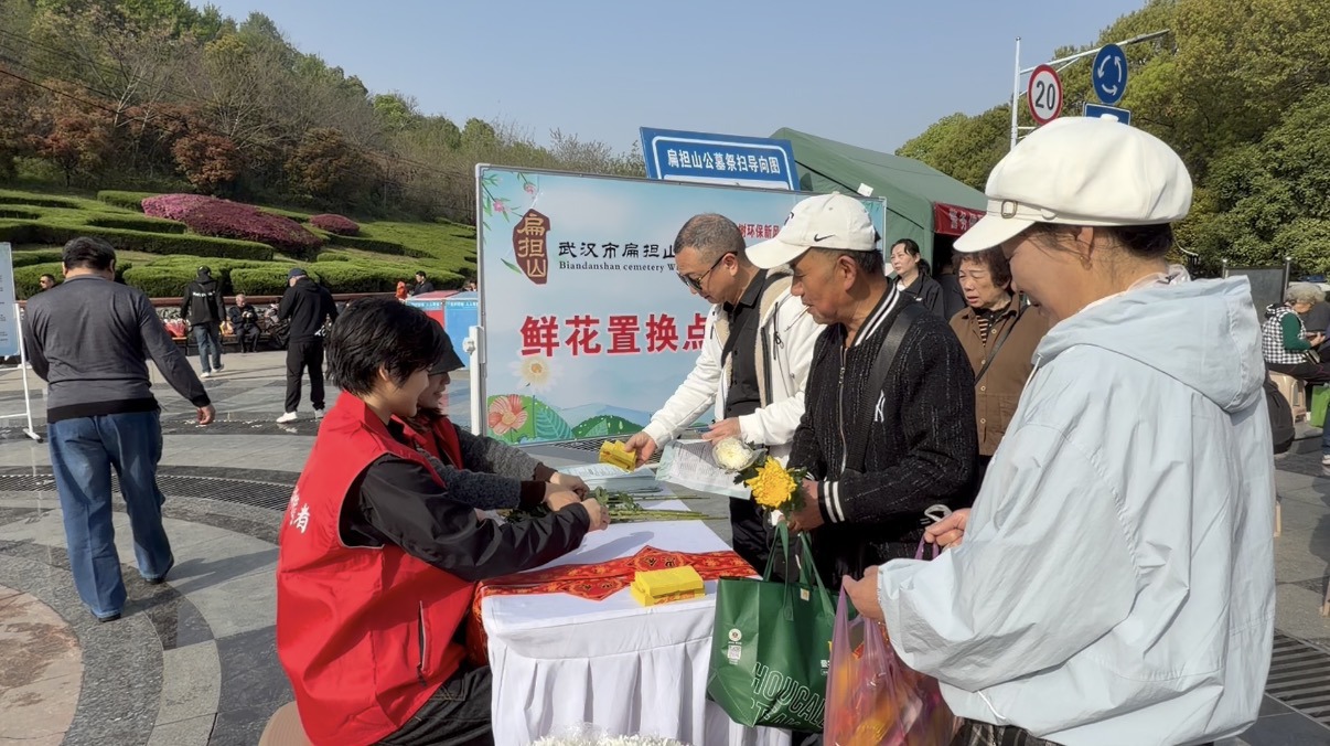 清明寄哀思,文明伴我行。为摒弃祭扫陋习、守护园区生态安全,今年清明期间,武汉市汉阳扁担山公墓持续深化文明祭扫举措,重点推进“鲜花换纸钱”便民服务,以低碳、环保、温情的方式,引导市民转变祭扫观念,让缅怀亲人的心意更有温度,让清明祭扫更具文明内涵。
