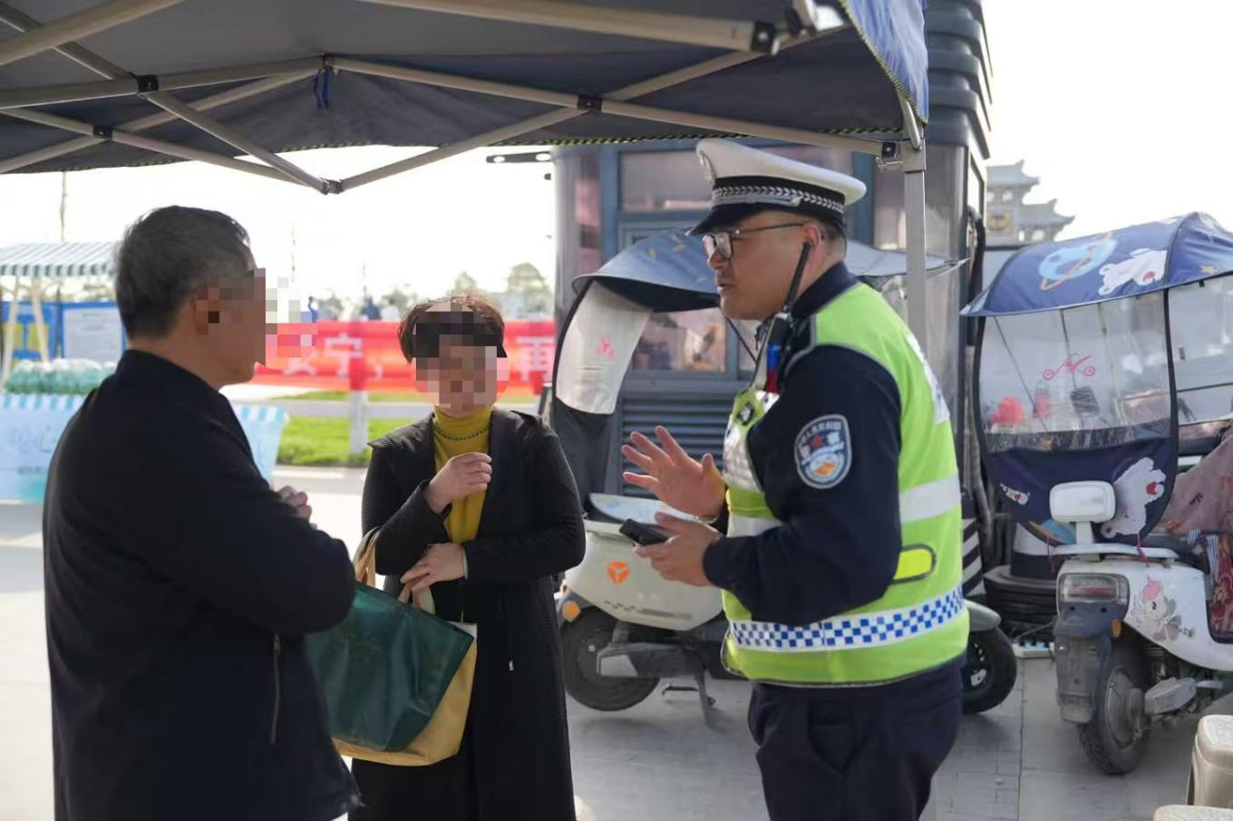 4月5日上午,在归隐陵园,一位婆婆站在出口中间迟疑张望,此时已临近中午,祭扫返程的车流、人流交织,不时有车辆从她身旁驶过。治安大队民警李智迅速将婆婆带至路边安全处仔细询问,原来婆婆是搭乘公交车前来,但结束后却不记得该去哪里乘车返回。“您顺着这条路直走,前面有指示牌,大概七八分钟就能到。”在确认婆婆清楚路线后,李智又嘱咐了几句,才目送她朝乘车点走去。