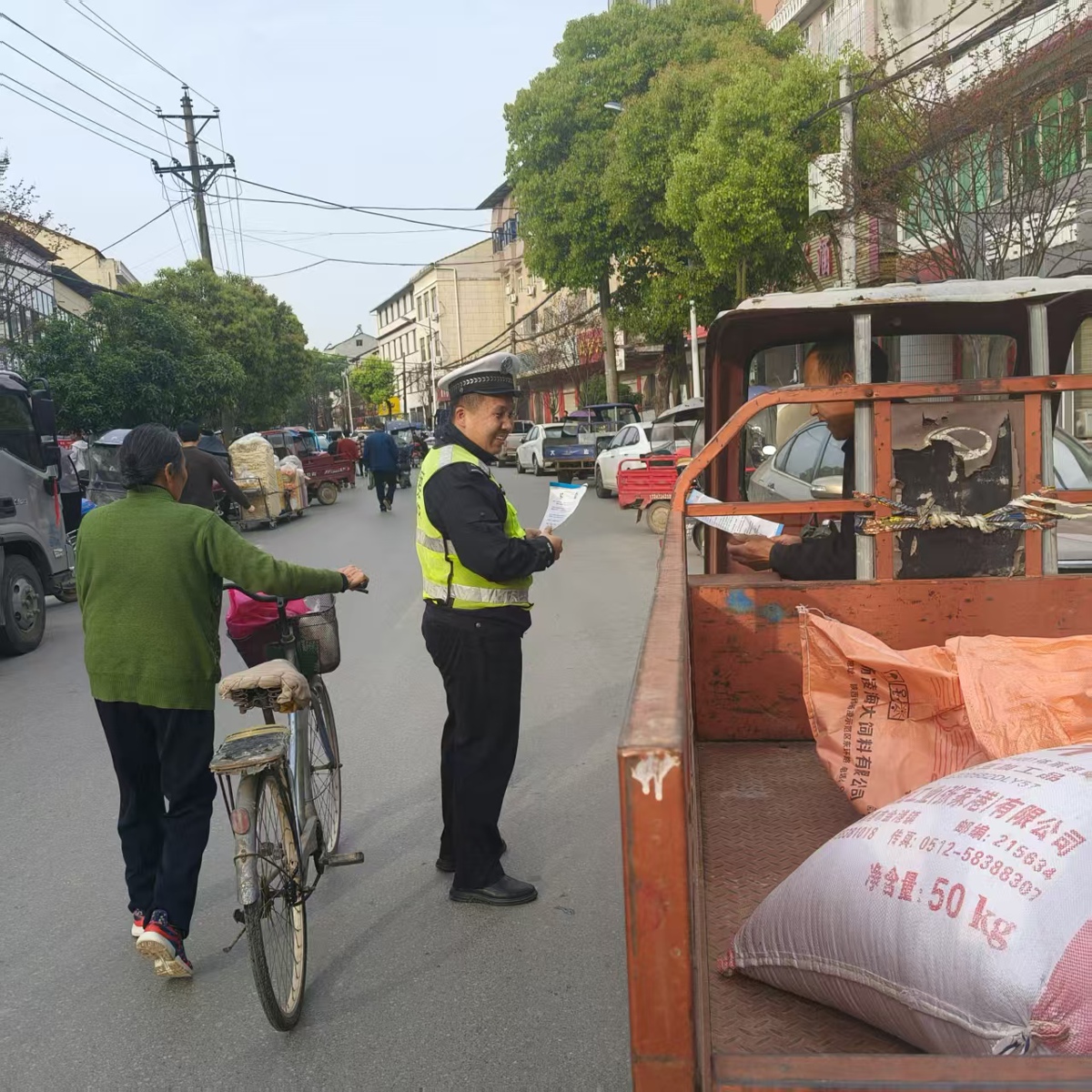 农村地区出行安全同样得到有力保障。4月5日,江夏分局交通管理大队七中队交通安全劝导员陶涛、许卫民等人深入法泗街、舒安街等地,开展清明节交通安全宣传,向村民讲解骑乘电动自行车佩戴头盔、严禁违法载人、杜绝酒驾等注意事项。4月6日8时26分许,六中队民警张小建在金水闸街巡逻时,发现一家六口正准备挤上一辆三轮摩托车前往亲戚家。张小建立即上前制止,耐心讲解三轮摩托车安全性能差、违法载人极易侧翻的危险,并结合典型事故案例开展警示教育。经劝导,一家人主动打消了乘坐三轮车出行的念头,转而选择合规车辆,确保平安出行。