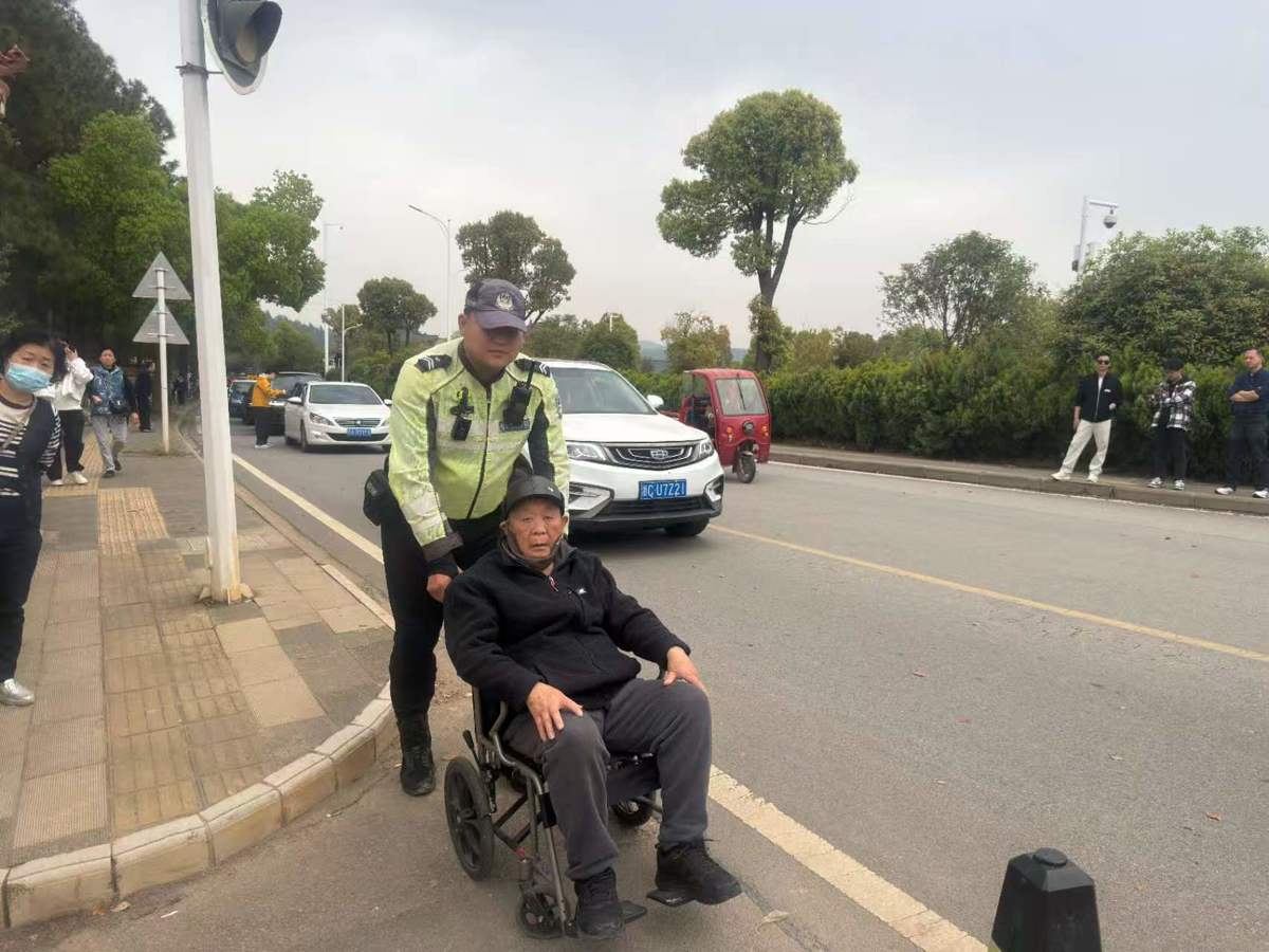 在保障道路畅通的同时,武汉交警以实际行动温暖市民出行路。4月6日9时许,孝恩园墓区周边道路车流涌动。一位坐着轮椅的老人由家人推行,途经路口时轮椅突然卡住,停在路中央。正在巡逻的东新交警快骑队员周浩发现后,迅速上前查看,发现刹车片被卡滞。他半蹲着处理,一手扶稳轮椅,一手示意车辆避让,将老人安全护送至路边。老人和家属连连道谢,周浩摆摆手,转身继续投入执勤。