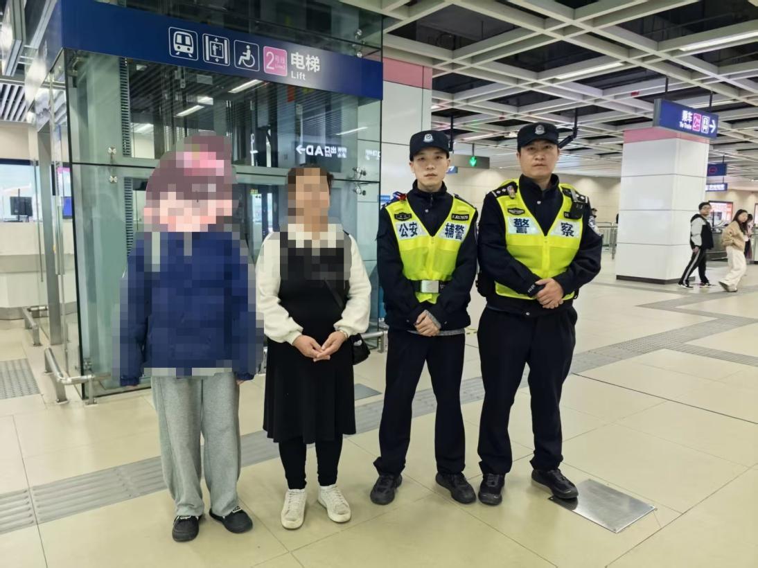 女孩的母亲方女士接到民警电话后,心急如焚,因路程较远无法立刻赶到车站,便恳请民警辅警帮忙暂时看护孩子。得知情况后,民警辅警与地铁工作人员轮流陪伴在女孩身边,悉心照料,时刻关注她的情绪变化,确保其安全。待方女士赶至地铁虎泉站后,民警辅警陪伴女孩前往该站点,与方女士顺利汇合。