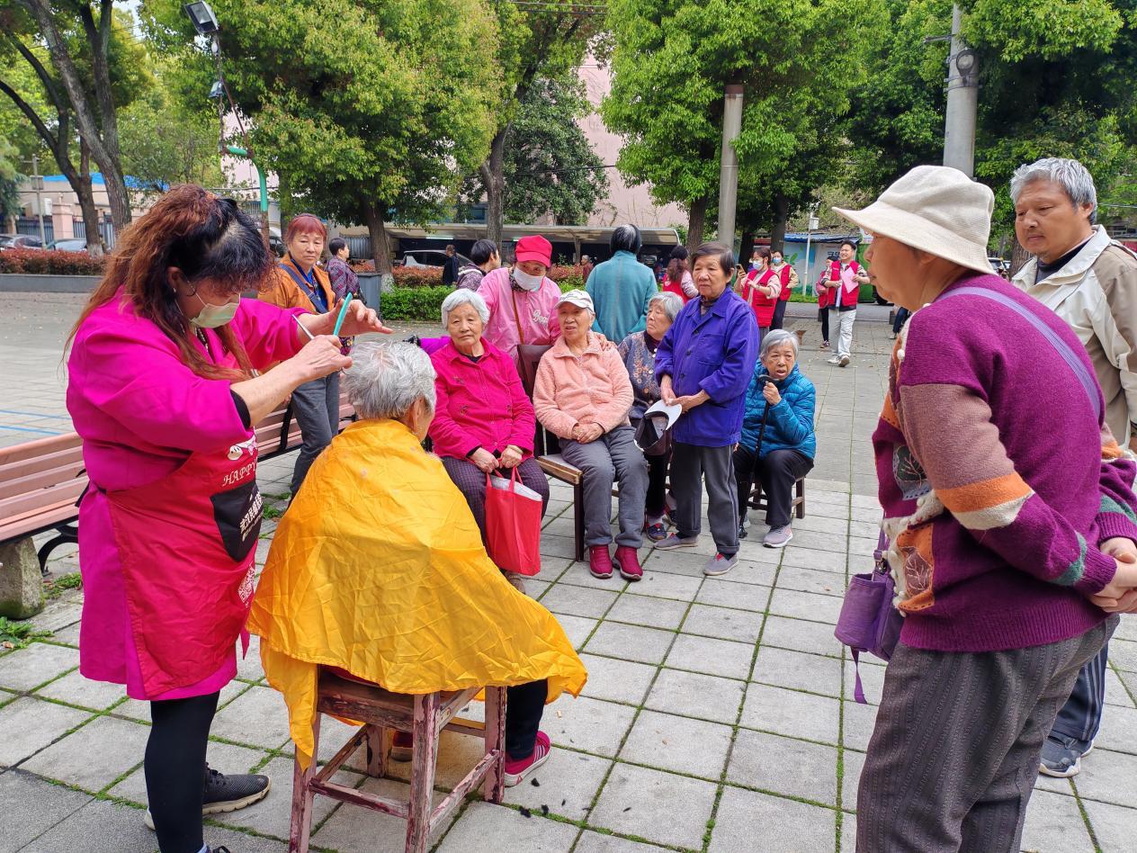 在本次义剪活动中,店主陈定珍一上午便为30余名居民提供免费理发服务。多年来,她积极参与街道、区级各类公益活动,不仅坚守初心回馈邻里,更被社区吸纳为“小飞剪志愿服务队”核心志愿者,常年为独居、空巢老人提供上门理发服务。