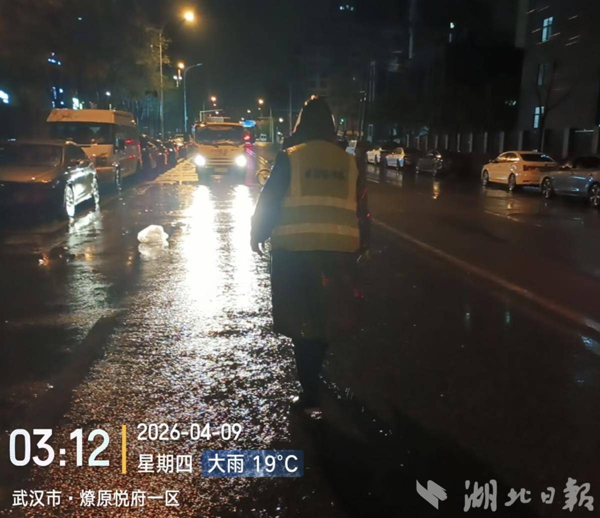 雨不停,人不歇。全体排渍应急人员通宵达旦坚守一线,身披雨衣,深一脚、浅一脚地穿梭在汉阳区各主次干道、老旧小区、低洼地段,顶着瓢泼大雨排查排水口,徒手清理堵塞的落叶、杂物,双手被雨水泡得发红、发麻,指尖冻得僵硬,甚至被杂物划伤也浑然不觉。水务“110”平台24小时保持畅通,值班人员双眼紧盯屏幕、时刻坚守岗位,全程无休接听群众求助电话,快速响应、精准调度应急力量处置各类突发情况。