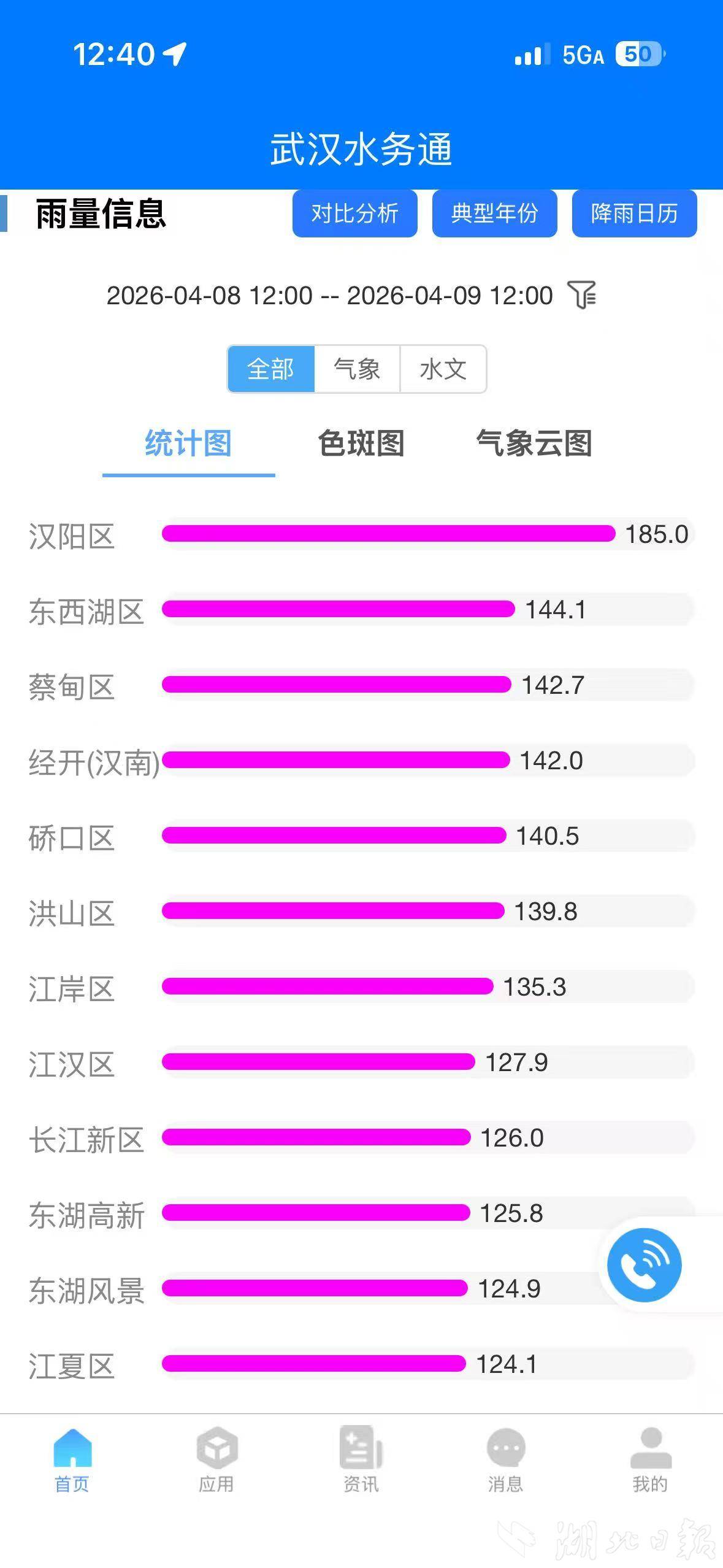 湖北日报讯(记者朱惠、通讯员柯杉)4月9日凌晨,武汉遭遇强降雨突袭,截至4月9日12时40分,汉阳区累计降雨量达185毫米,远超同期均值,全市排名第一,给全区排渍工作带来极端严峻的考验。