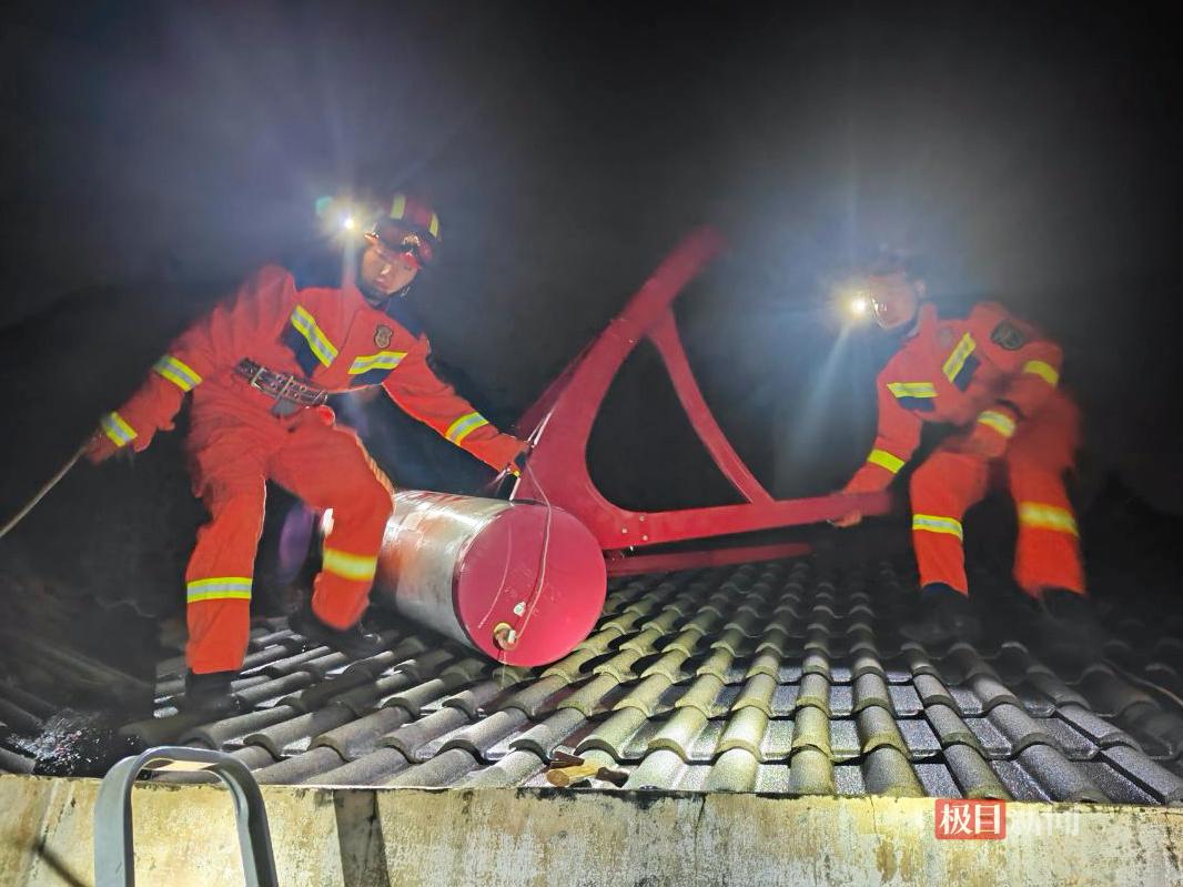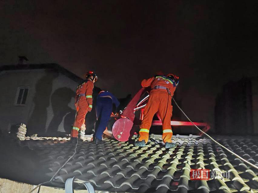 4月9日凌晨0时59分,武汉长江新区阳逻街某小区内发生险情,一栋居民楼楼顶的太阳能热水器被大风刮落,悬在半空中,随时有坠落的风险。武汉市消防救援指挥中心接到报警后,立即调派武湖消防救援站出动1辆消防车、7名消防员赶赴现场处置。