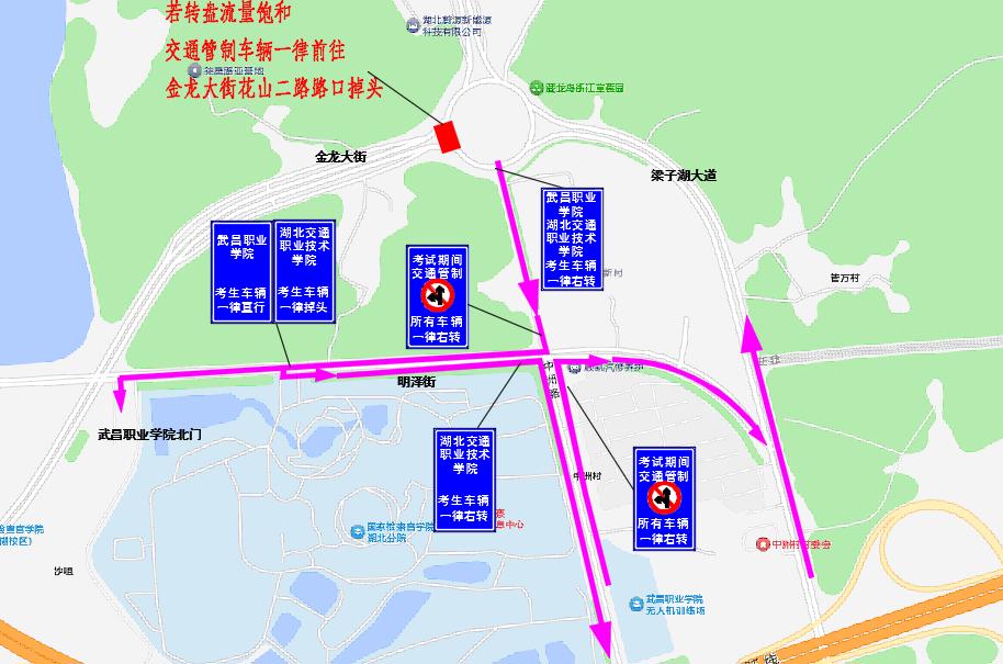 中洲转盘、明泽街与中洲路路口、明泽街与梁子湖大道路口(沿线涉及武昌职业学院、湖北交通职业技术学院):交管部门将根据交通流量情况,采取临时交通管制措施;