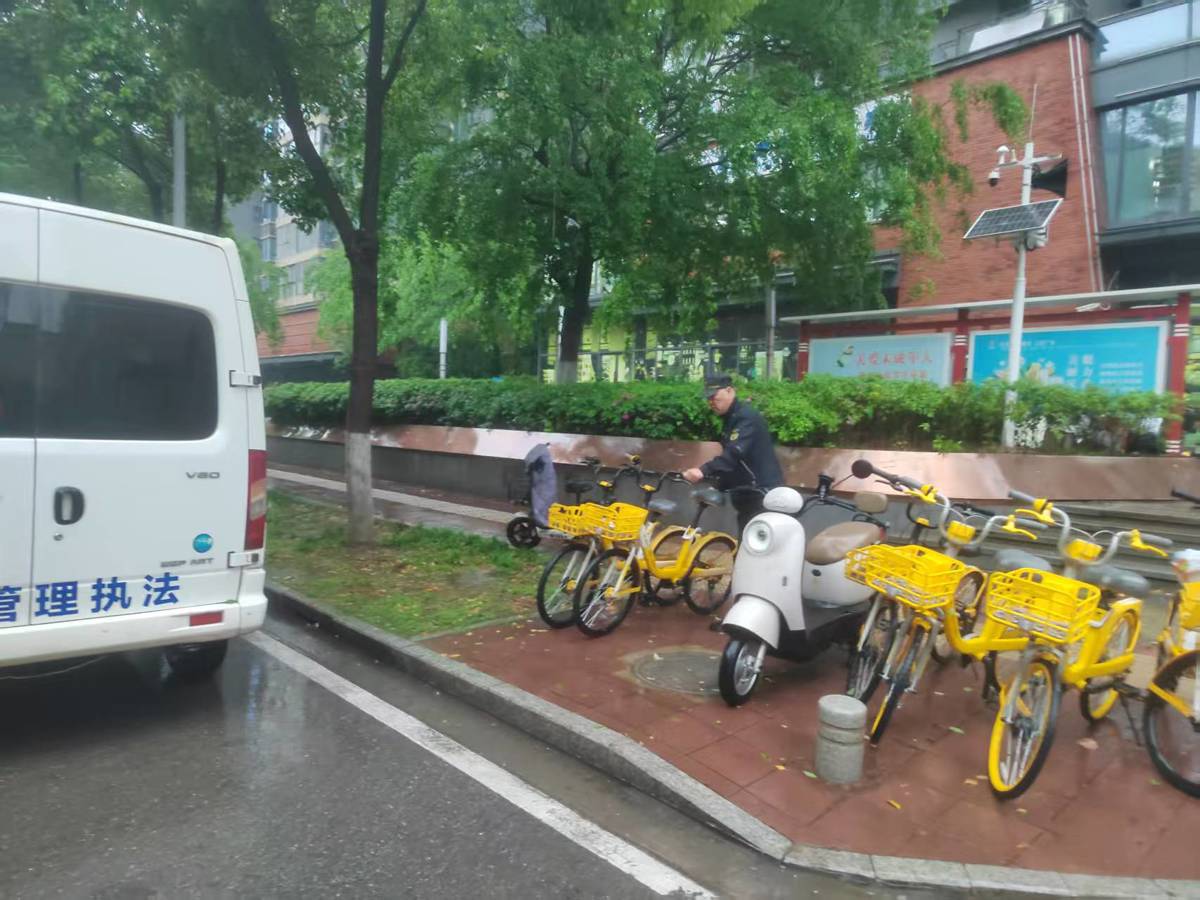 三中队负责人介绍,为快速恢复辖区市容环境,中队联合共享单车运营企业,启动暴雨后市容环境整治暨安全隐患排查专项行动。行动中,共出动清运车、执法车等各类车辆5台,累计出动执法人员、企业运维人员、社区及物业工作人员30余人次,重点对商圈、主干道、居民小区等区域开展全方位排查整治,累计清运规范共享单车200余台。