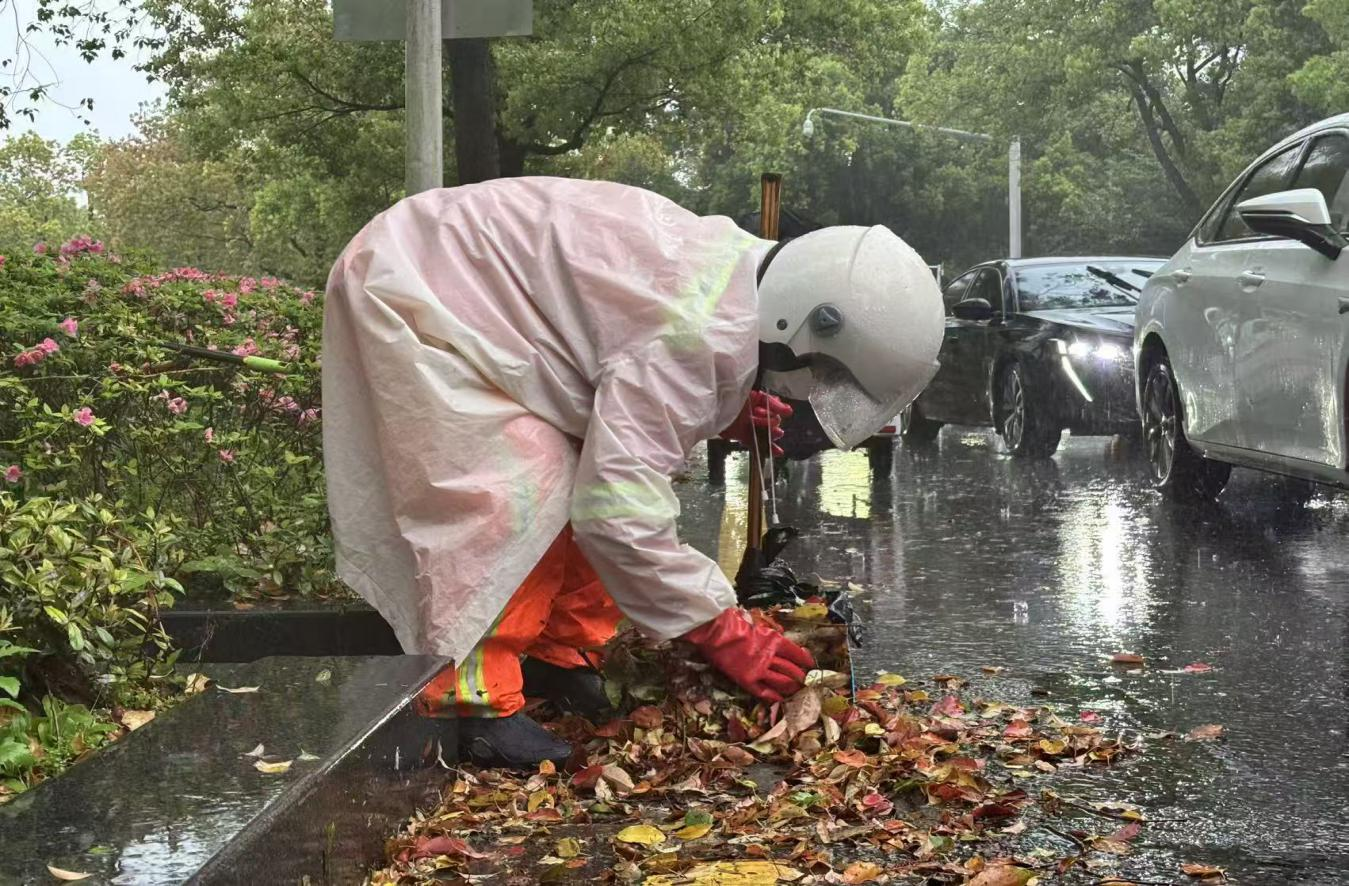 9日凌晨,暴雨倾泻。城区部分道路出现淤泥、落叶和积水,全市环卫战线迅速转入战时状态,重点盯防排水口、低洼地段,一旦发现杂物堵塞,立即清掏疏通,确保排水畅通。