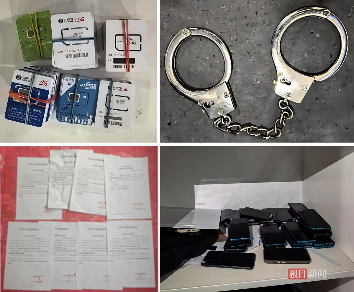 民警上门搜查时,发现数十部工作手机码放在柜子里,十余份虚假的法律文书、多张伪造的工作证件散落在桌上,衣柜里还藏着几套仿制制服,甚至还有一副手铐。在铁证面前,该团伙无从抵赖,如实交代了犯罪事实。