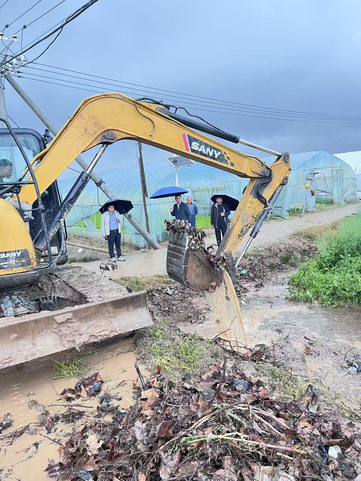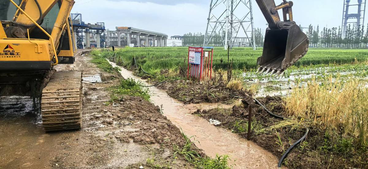 针对排查出的沟渠堵塞、农田积水问题,街道统筹调配人力与机械设备,紧急出动7台挖掘机,对辖区重点沟渠、积水地块开展疏通排涝作业,打通排水“堵点”,加快积水排出。