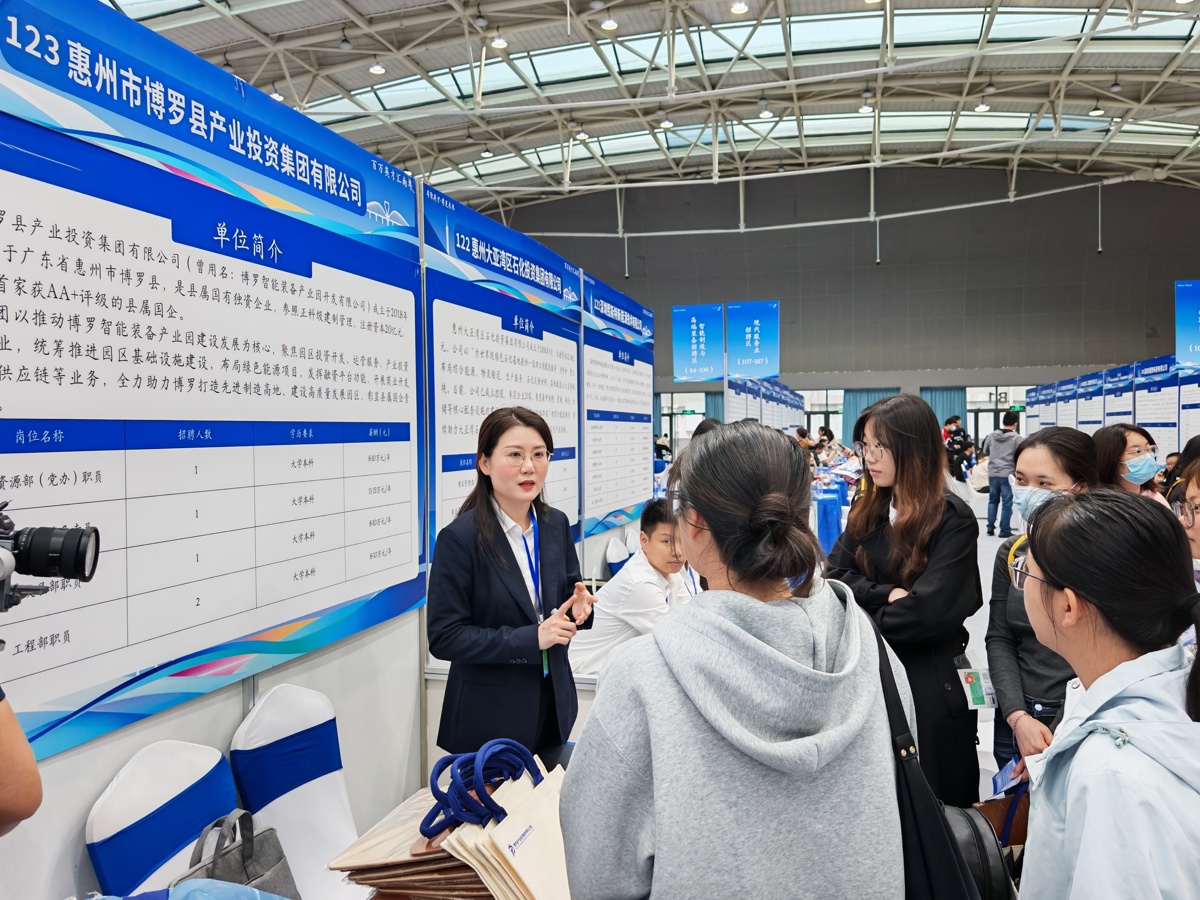 招聘会现场气氛热烈,企业招聘人员与学子积极交流。惠州市博罗县产业投资集团有限公司HR陈晨鼓励同学们大胆咨询、主动尝试,不要因岗位名称陌生而犹豫,并向大家推介惠州宜居宜业的城市环境。不少应届学生表示,通过现场交流,对职业方向和企业需求有了更清晰的认识。