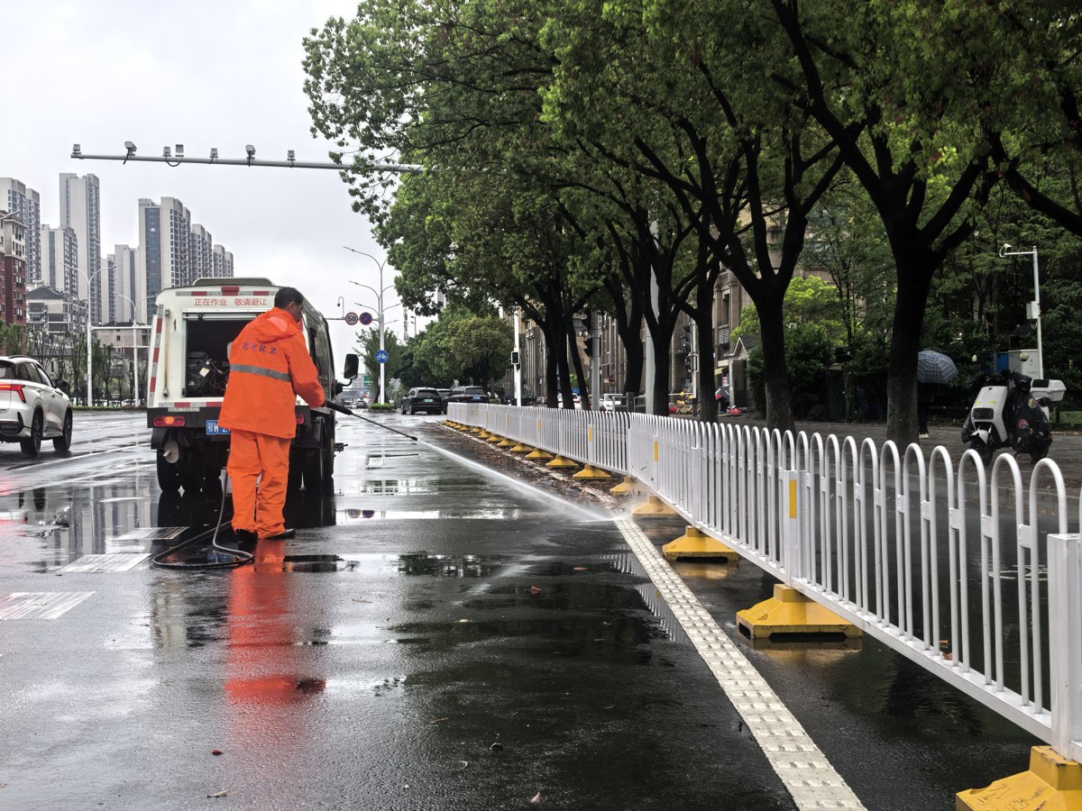 4月9日下午2点30分,雨势渐收。东西湖区各街道环卫部门迅速调整作业模式,坚持“雨停即清、快速处置、不留死角”的原则,全面展开拉网式雨后洗扫与清淤保洁行动,全力保障辖区内各主次干道、校园、医院及地铁口周边等车流、人流密集区域实现“水退、路净”,道路畅通、环境整洁。