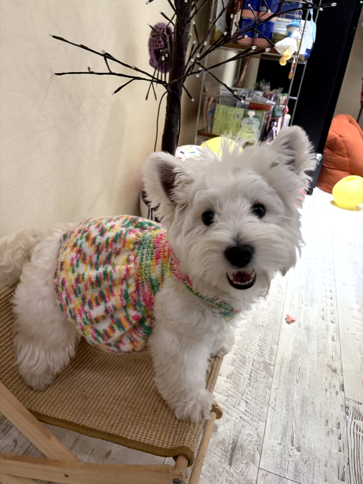 后来,她在上海学习了一年专业技能,考取了职业资格证书。闲暇时,她也没荒废自己的老本行,常常利用服装设计的专业知识,给幸幸手工编织衣服、围巾,一针一线都藏着对宠物的偏爱,这也让她更加坚定了开一家有温度的宠物机构的想法。