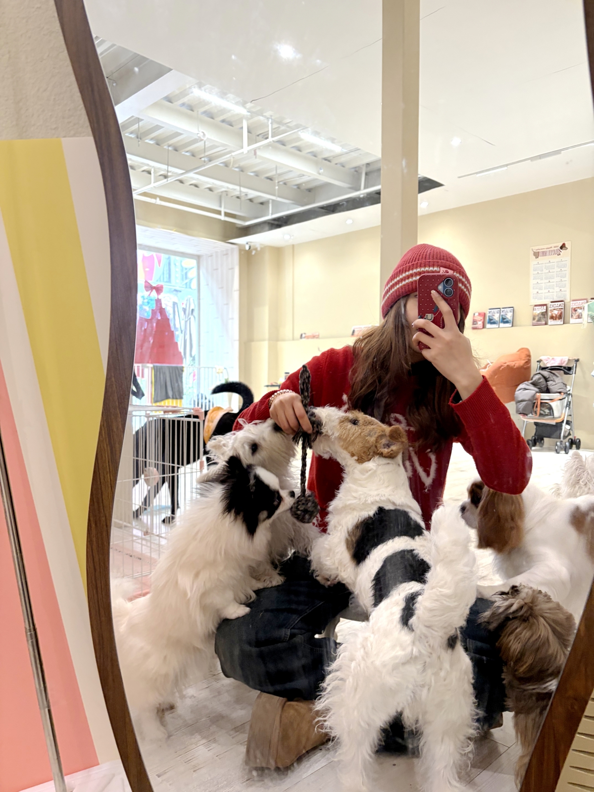 4月9日,新闻记者来到江汉区中英街的“小狗来幸”,透过明亮的落地窗望去,屋内几只狗狗正欢快地摇着尾巴、追逐嬉戏,宠托师李韵一袭轻便穿搭,正弯腰轻抚一只缩在角落的比熊,指尖温柔,轻声细语地引导它融入群体。