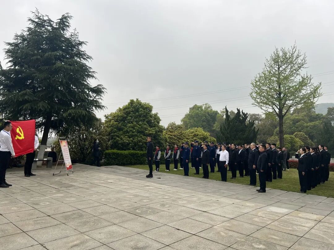 “我志愿加入中国共产党,拥护党的纲领,遵守党的章程……”在鲜红的党旗下,全体党员干警高举右拳,重温入党誓词,铿锵誓言回荡在英烈广场,彰显着法院干警对党忠诚、坚守法治的坚定信念。仪式结束后,干警们有序瞻仰烈士纪念设施、清扫烈士墓,以文明祭扫方式寄托哀思,接受深刻的红色教育与精神洗礼。
