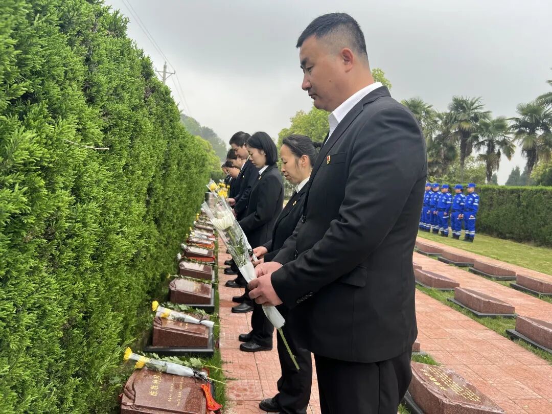 活动现场庄严肃穆,伴随着雄壮的中华人民共和国国歌,干警们肃立致敬,向革命烈士敬献花束,向为国家独立、民族解放、人民幸福英勇献身的革命先烈默哀,深切缅怀先烈们的不朽功勋与崇高气节。