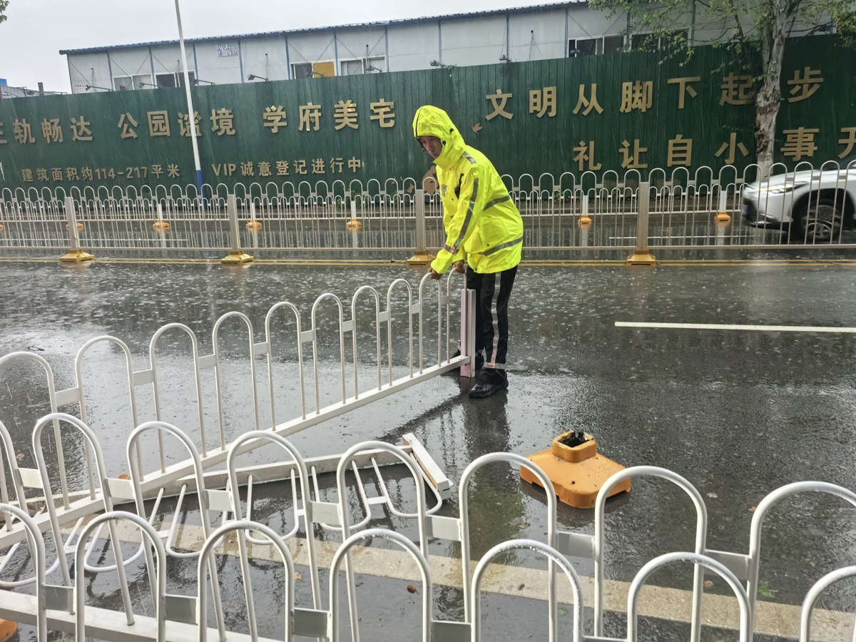 8时45分许,长江新区交警谭智豪正在武湖大道与立山路交叉口疏导早高峰车流。“保持车距!不要急刹!”谭智豪一边观察车流,一边大声提醒、打着手势。其间接到一起事故警情,他立即驾车赶往现场,途中发现路中一段隔离护栏被车撞倒,歪歪斜斜横在车道上,影响转弯车辆通行。谭智豪迅速下车,用手将倾倒的护栏一节一节扶正,对准底座卡槽重新固定,路口通行秩序恢复正常。