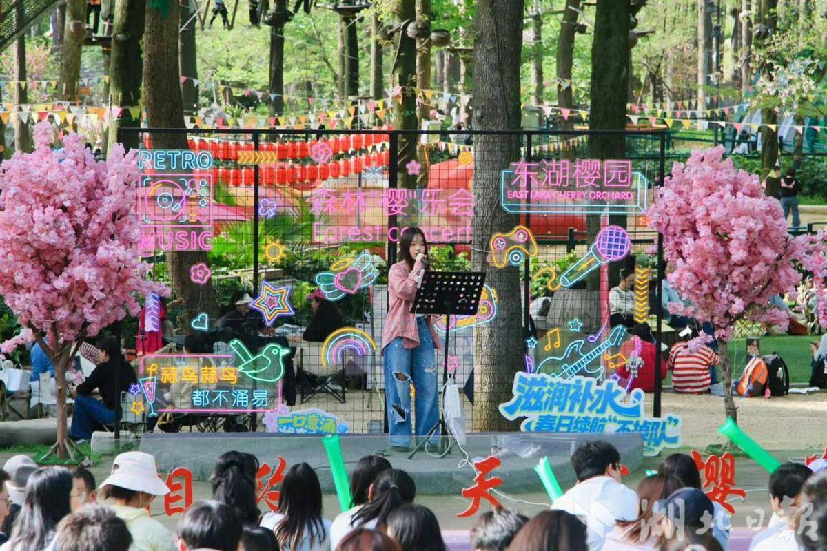 回首今春,樱园焕新升级、亮点迭出,处处皆藏春日新意。园区精心引种特色樱花,花枝缀满粉白,清雅脱俗、韵味独具;北区空间全新拓展,赏樱动线进一步优化延伸,移步易景,让每一次游园都能邂逅不期而遇的美好。同时,趣味机器人互动体验、多场浪漫樱花音乐会轮番上演,花香萦绕间旋律悠扬,自然盛景与人文雅趣相融相生,为广大游客带来沉浸式赏樱新体验,也让东湖樱花园成为今春武汉备受追捧的热门赏花目的地。