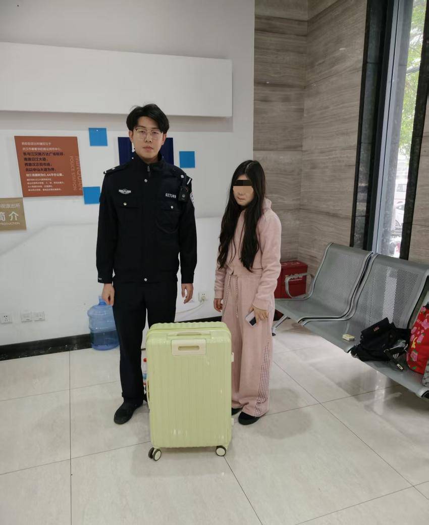 4月6日,小周行程结束正准备返校的时候,不慎把自己的行李箱给弄丢了。箱里不仅有身份证、学生证这些重要的证件,还有重要学习资料,而距离返程高铁发车时间不足两小时,焦急万分的她赶紧报警求助。