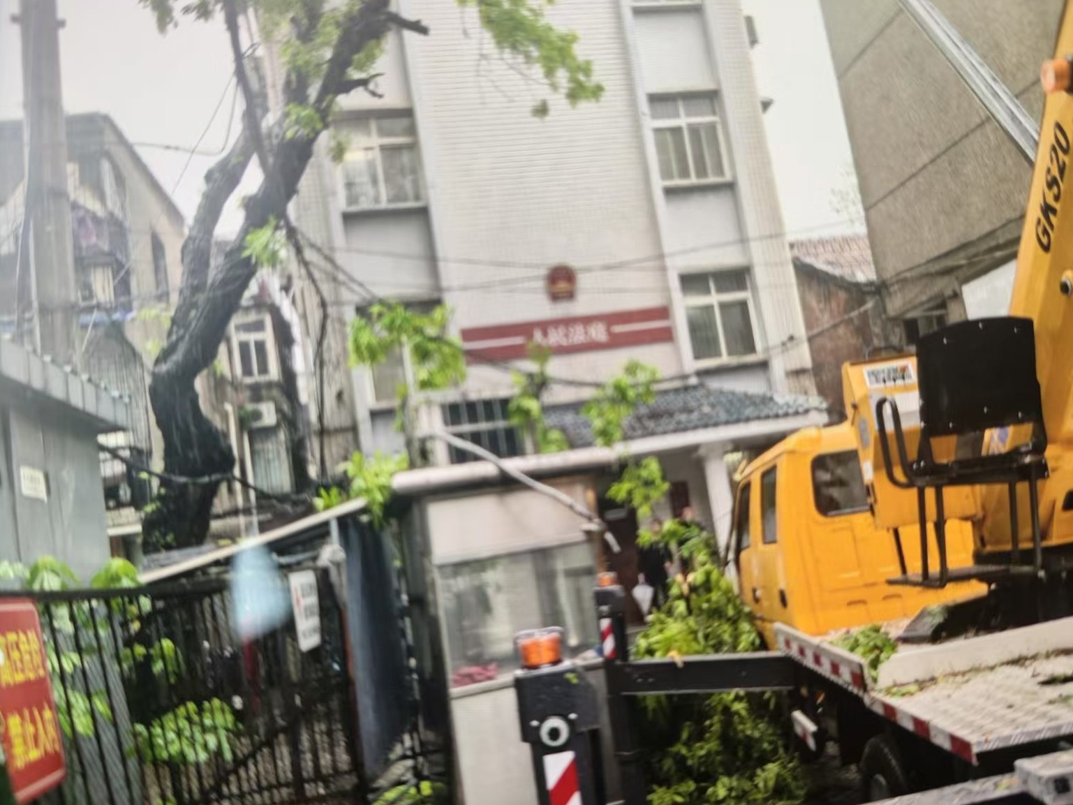 “有棵树倒在电线上了!”14时许,中华路街派出所辖区一树木枝干倒伏搭触电线。民警第一时间赶赴现场设置警戒区域,随后又联系供电部门到场对线路进行全面检查,并组织人员对涉险树木枝干进行修剪清理,保障周边群众用电安全。