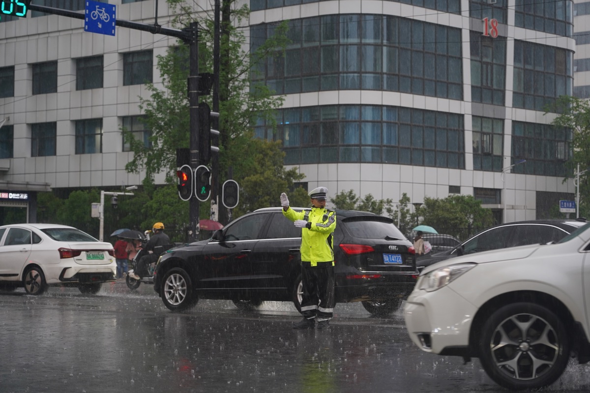 在重点路段疏堵保畅一线,武昌区公安分局交管大队三中队副中队长张伟哲带领民警、辅警坚守徐东大街等交通要道,开展疏堵保畅与排水抢险工作;湖北省人民医院路口,执勤民警重点疏导急救车辆和就诊车辆,优化停车秩序,保障就医和急救通道畅通。