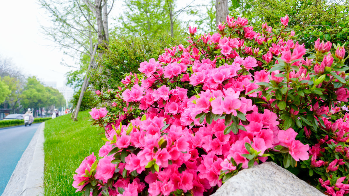 园林专家介绍,原因有五种。首先,街头花儿经过雨水冲刷,有效清除花瓣表面附着的灰尘、污染物,使花朵恢复本真色泽,色彩更纯净、饱和;其次是花瓣表面形成的薄水层可填充微观凹凸结构,减少光线漫反射,使更多特定波长的颜色集中进入市民眼中,从而显得更鲜艳、透亮;同时,花瓣上悬挂的晶莹水珠如同天然透镜,在晨光或散射光下闪烁如珍珠,不仅增加立体感,也强化了“娇艳欲滴”的视觉效果;不仅如此,雨后空气湿度升高,有助于花香分子挥发与扩散,使香气更浓郁,进一步增强整体美感体验;最后一个因素是雨水为植物补充水分,部分花卉(如杜鹃)在适度湿润后,花瓣舒展更充分,花色更饱满,低温高湿环境甚至可延长花期。