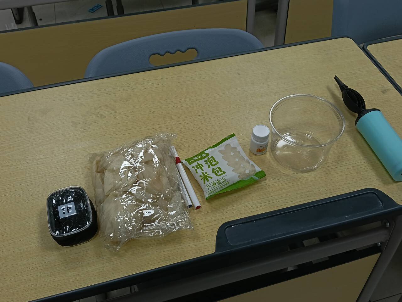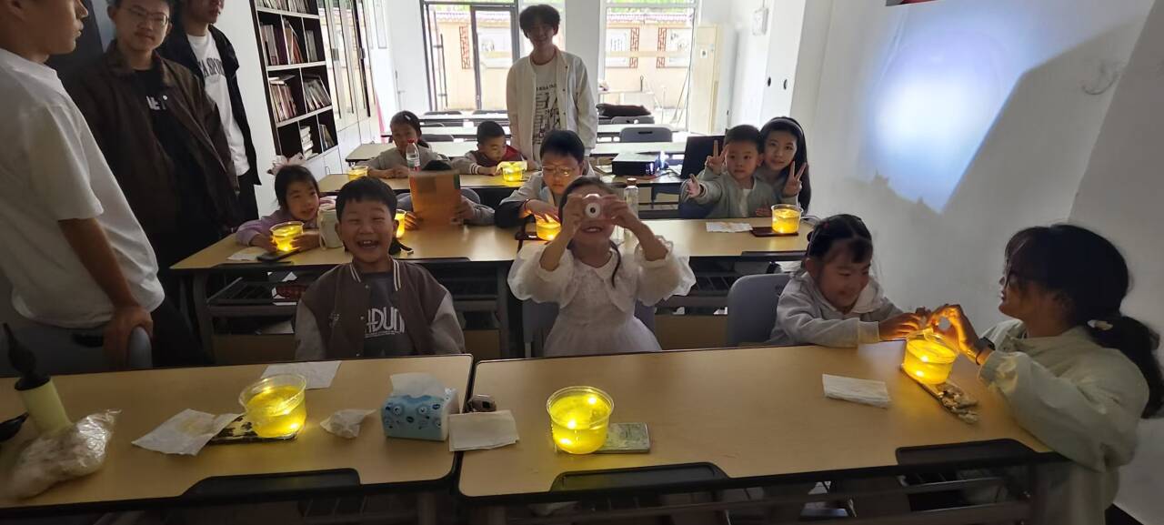 气球底部装入米粒配重,通过重心下移实现触碰不倒、自动复位的效果;维生素B2药片溶于清水后,在强光照射下会散发温柔黄绿色荧光,复刻浪漫萤火流星雨光影,生动的讲解瞬间点燃了孩子们的探索热情。